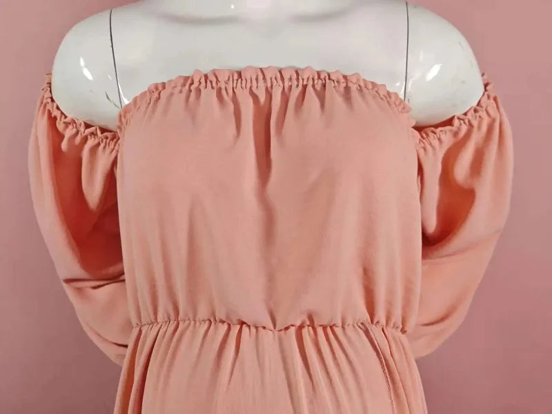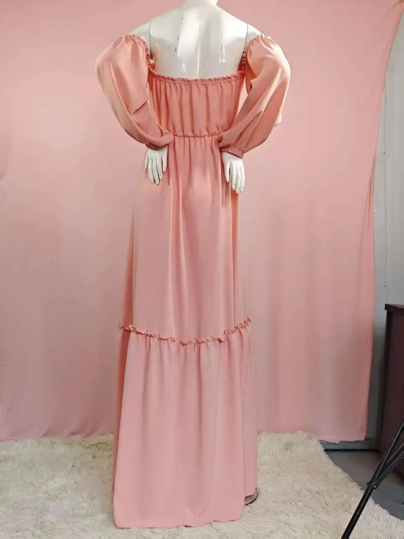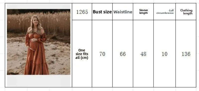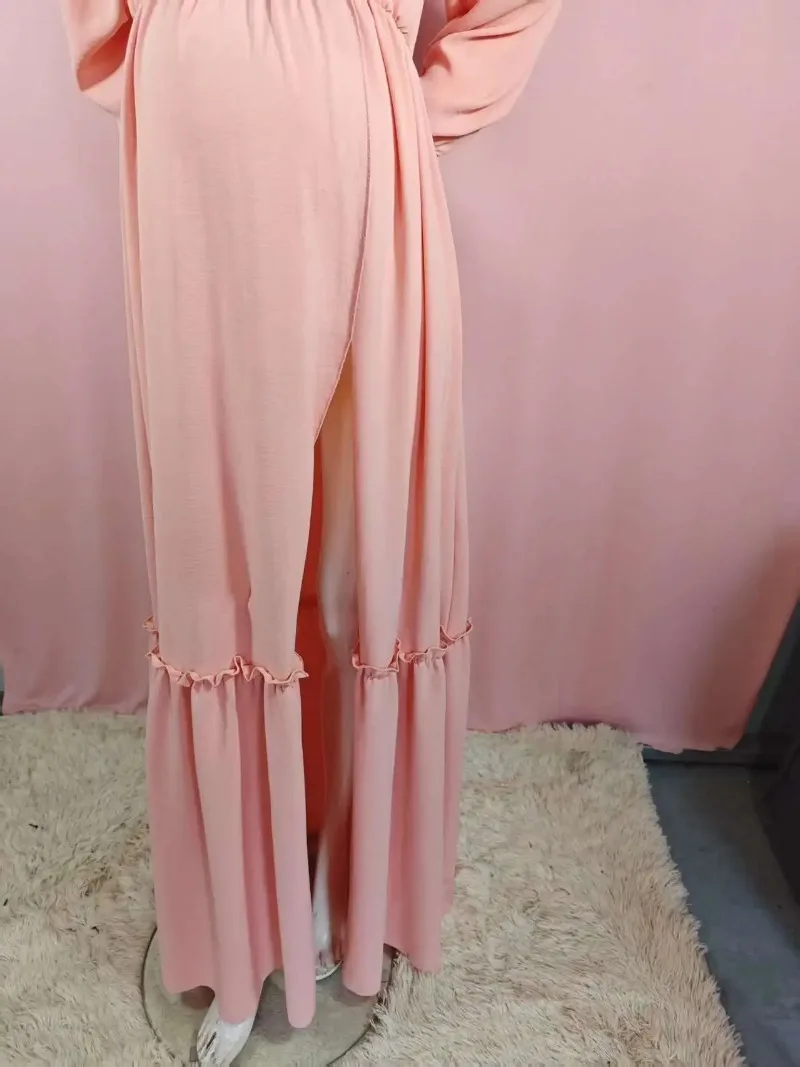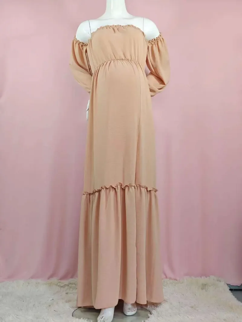 Maternity Photoshoot Dress - Sexy Off-Shoulder Gown Playful Puff Sleeves & Leg-Baring Slit Clothes for Pregnant Women Photograph