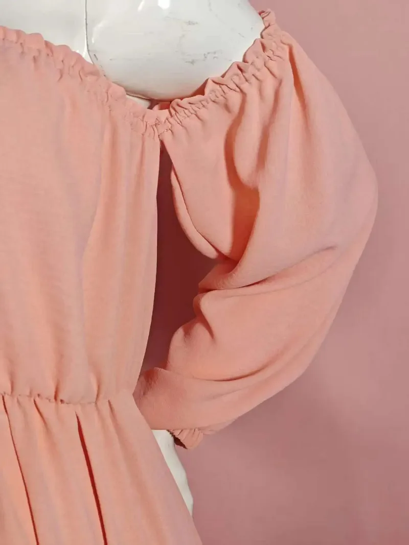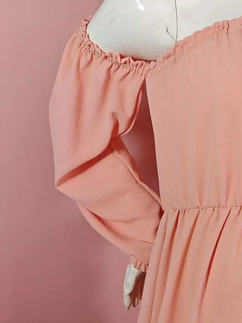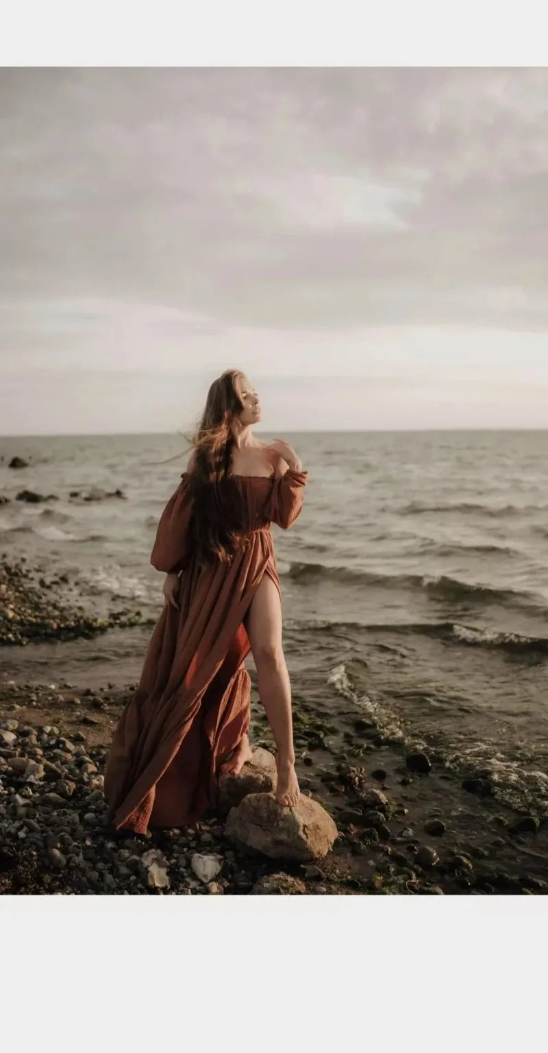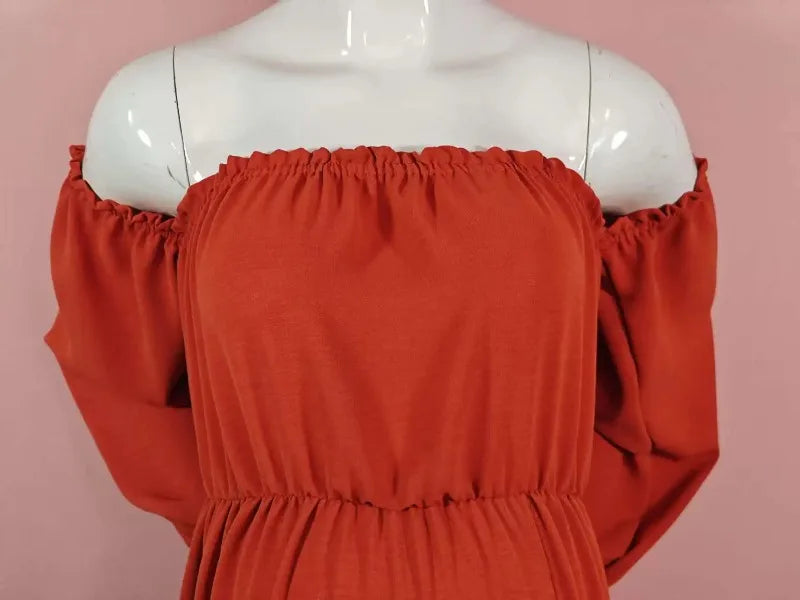 Maternity Photoshoot Dress - Sexy Off-Shoulder Gown Playful Puff Sleeves & Leg-Baring Slit Clothes for Pregnant Women Photograph