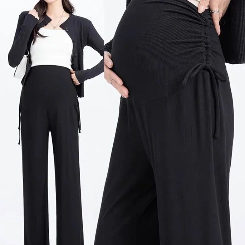 Maternity Trousers Spring and Autumn Outside Wear New Summer Petite Casual Drawstring Straight Wide Leg Trousers Maternity Wear