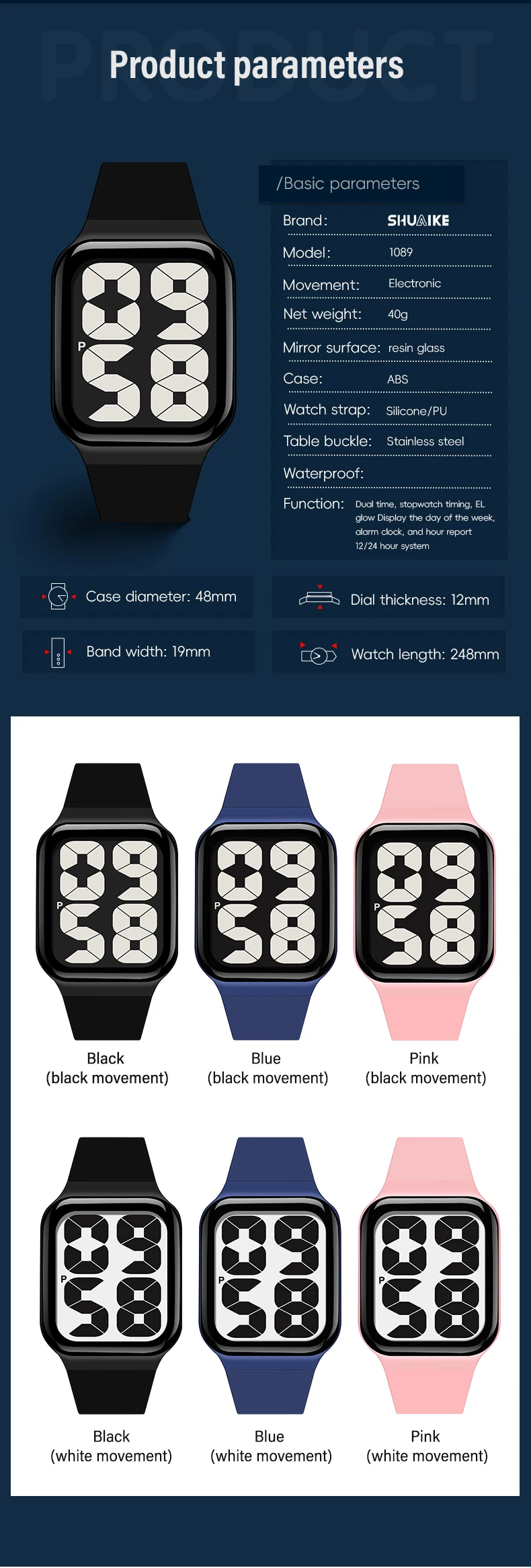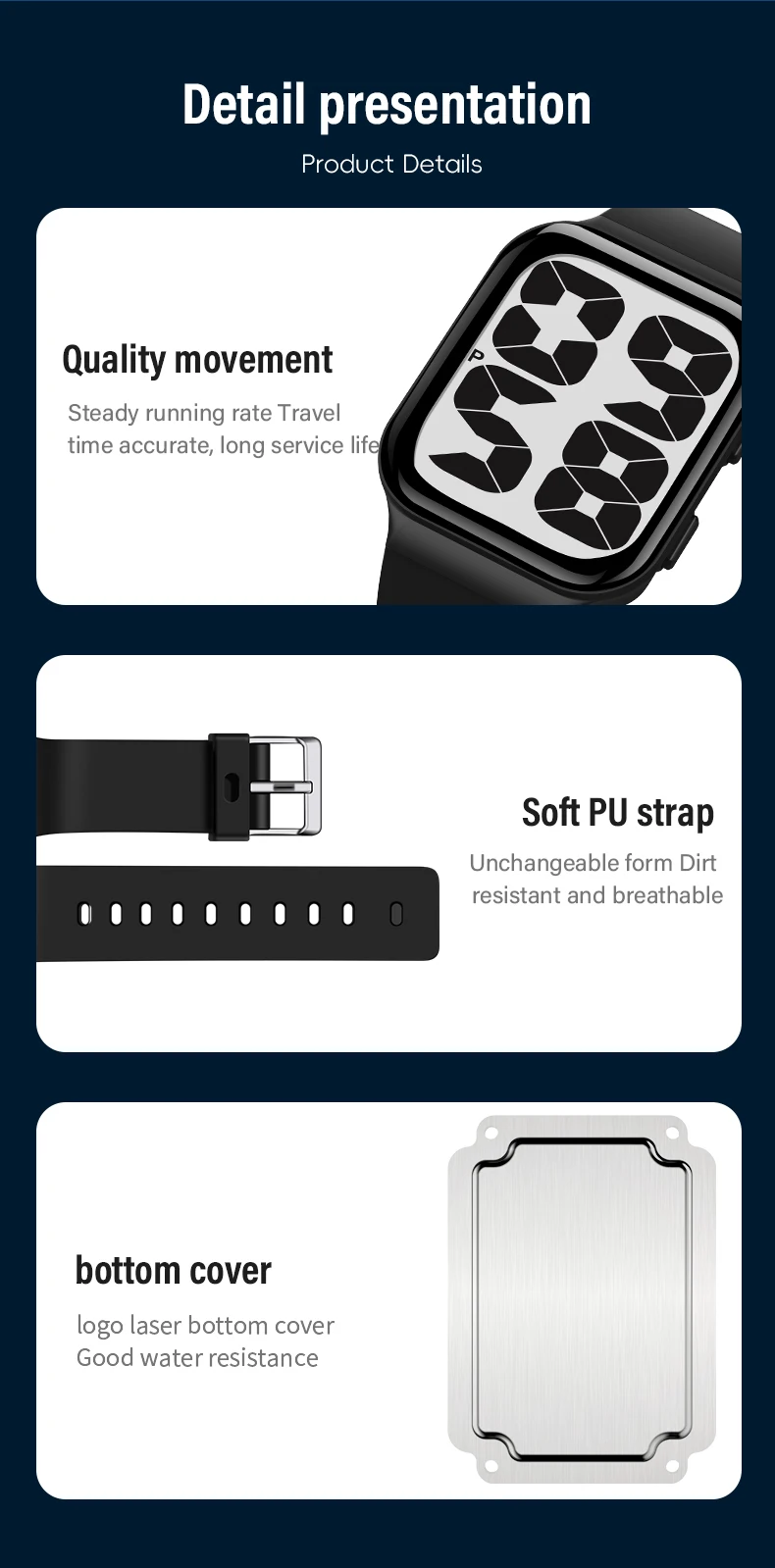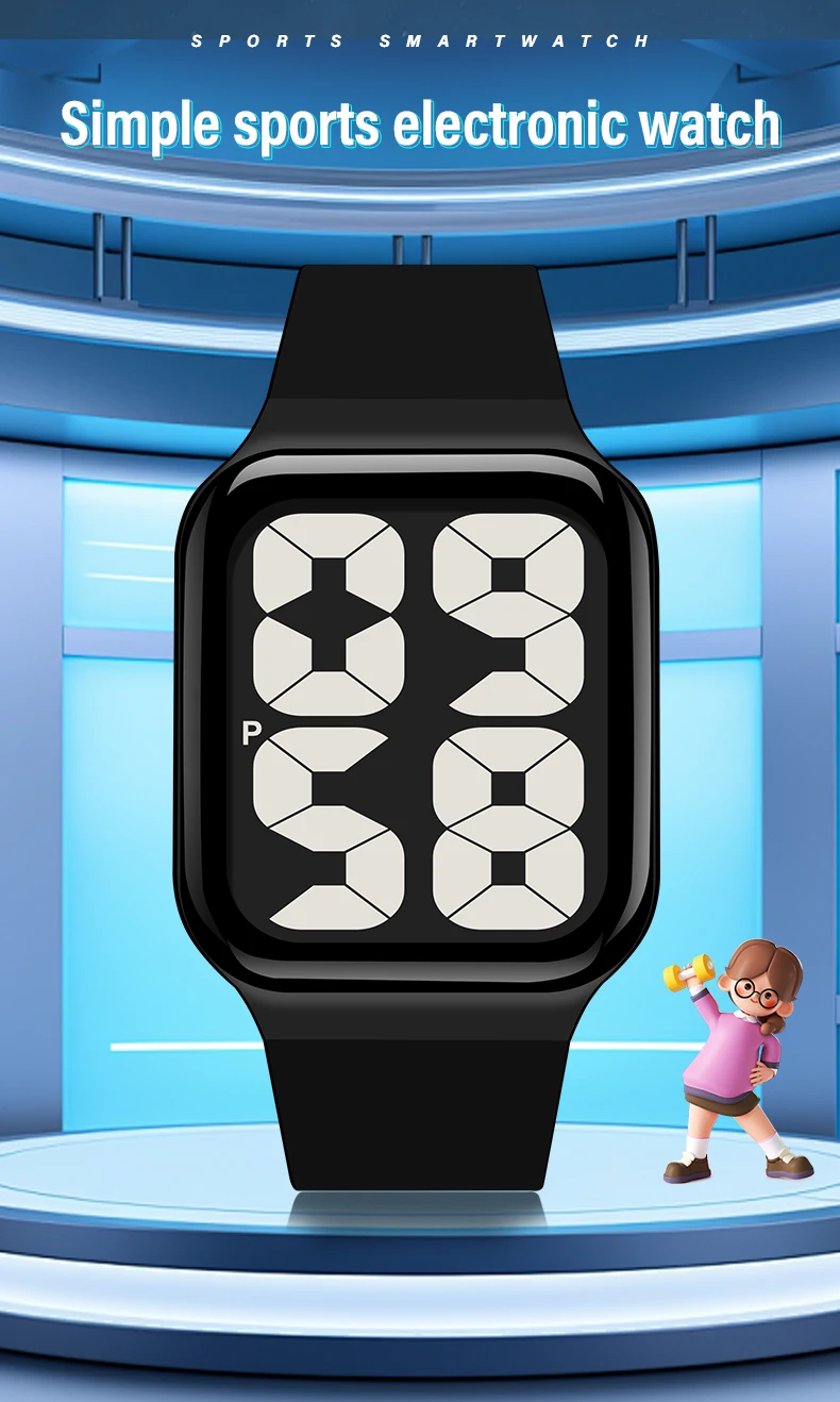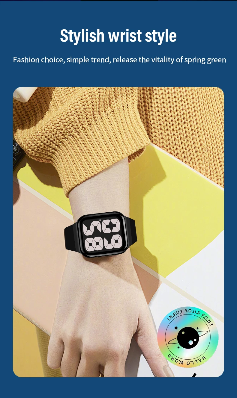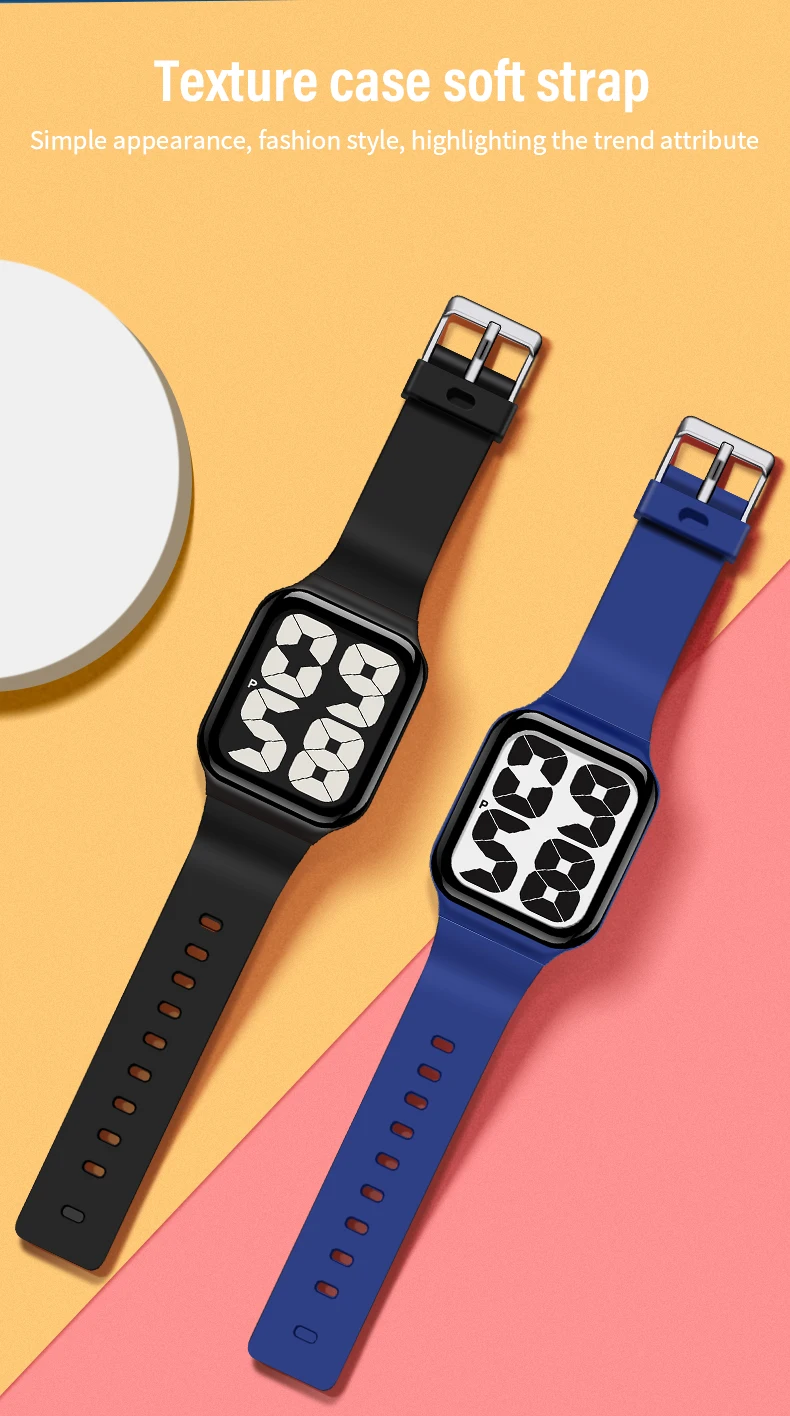 Men's and women's fashionable casual electronic watch with large dial, large numbers, minimalist design, waterproof watch