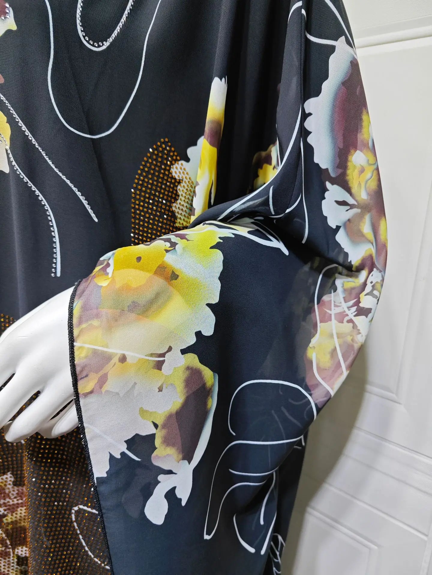 Muslim Dress for Women Chiffon Diamond Party Abaya Dresses Arab Long Robe Morocco Dubai Kaftan Vestidos Jalabiya Ramadan Eid