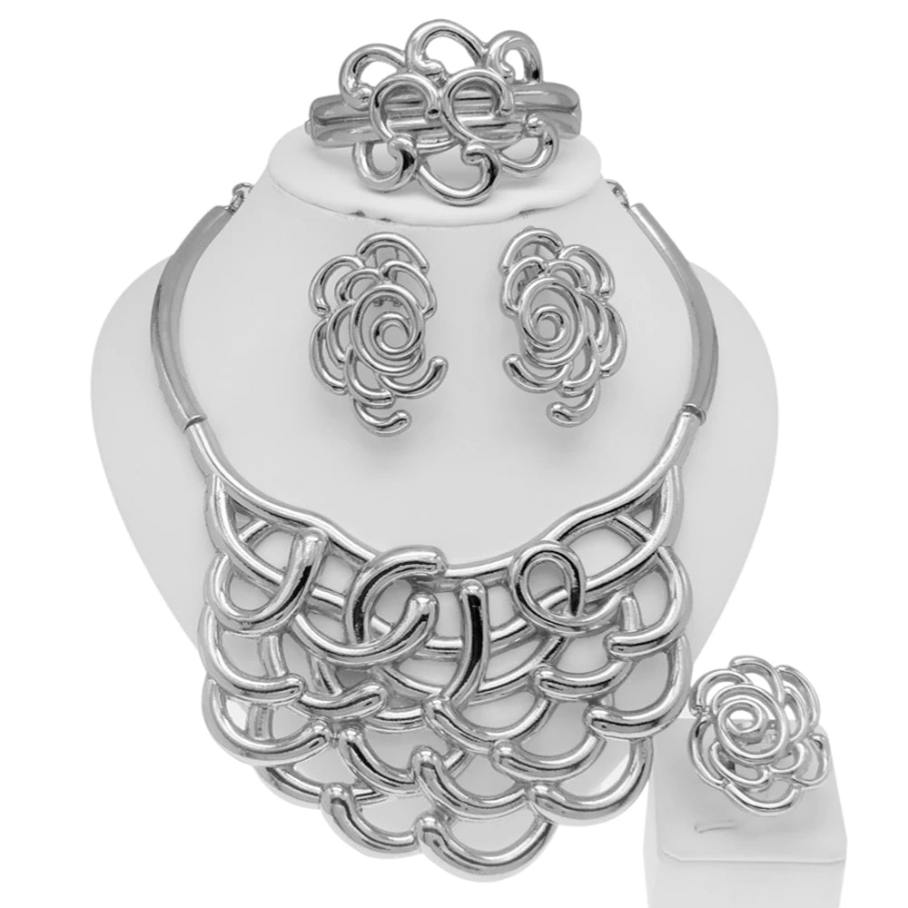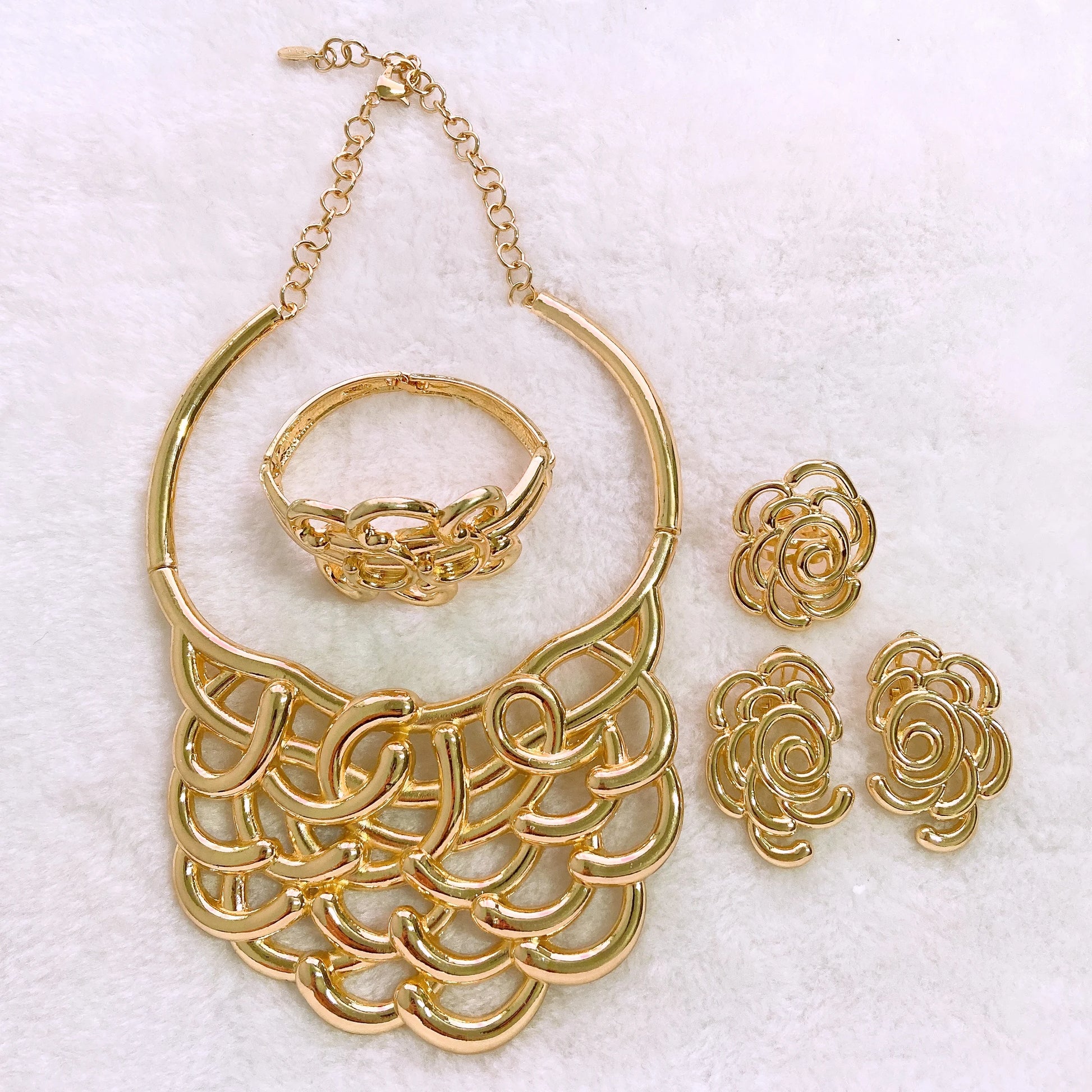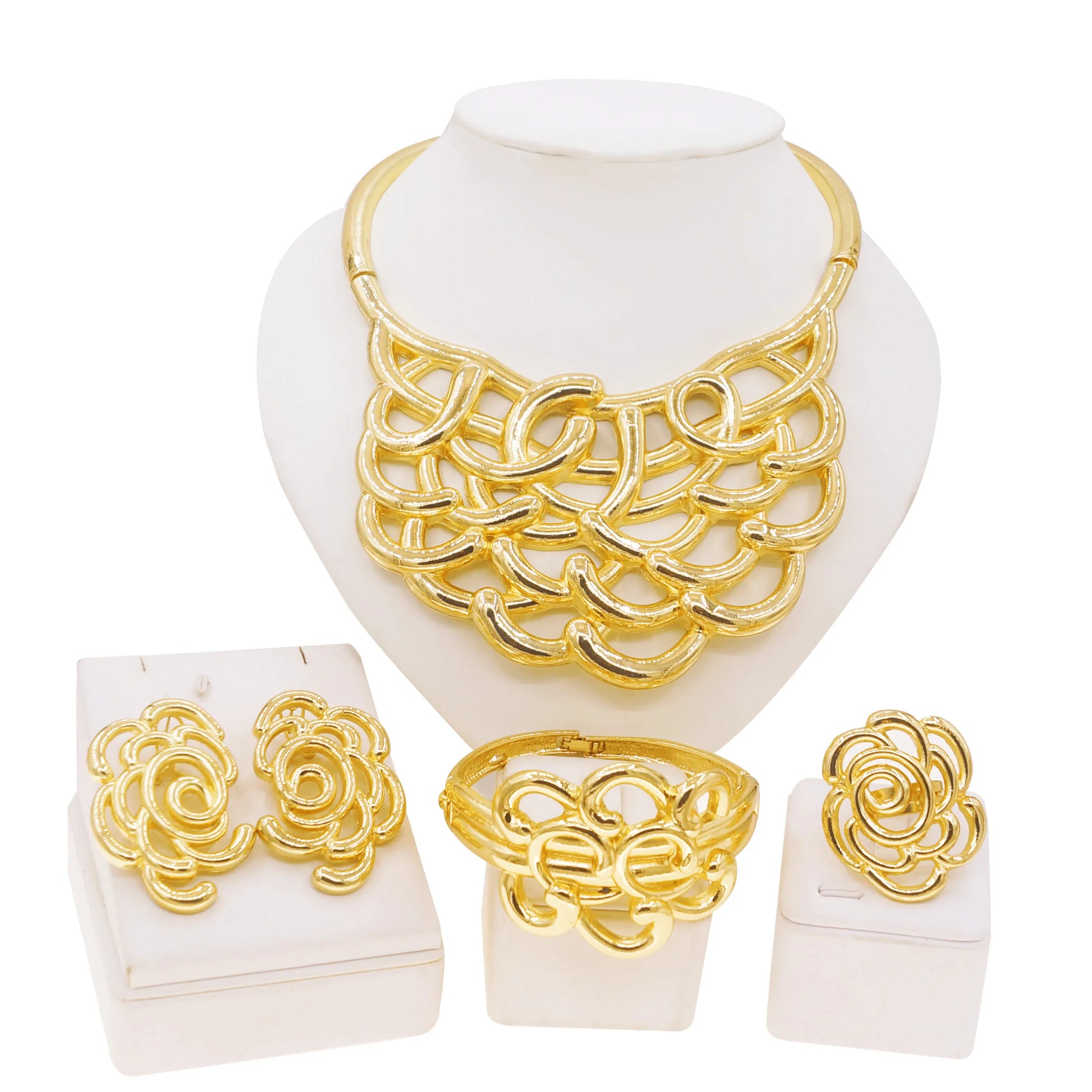 Necklace For Women Dubai Gold Plated Jewelry Set Luxury Jewelry Original Ring BraceletWedding Banquet Costumes Nigeria Wedding