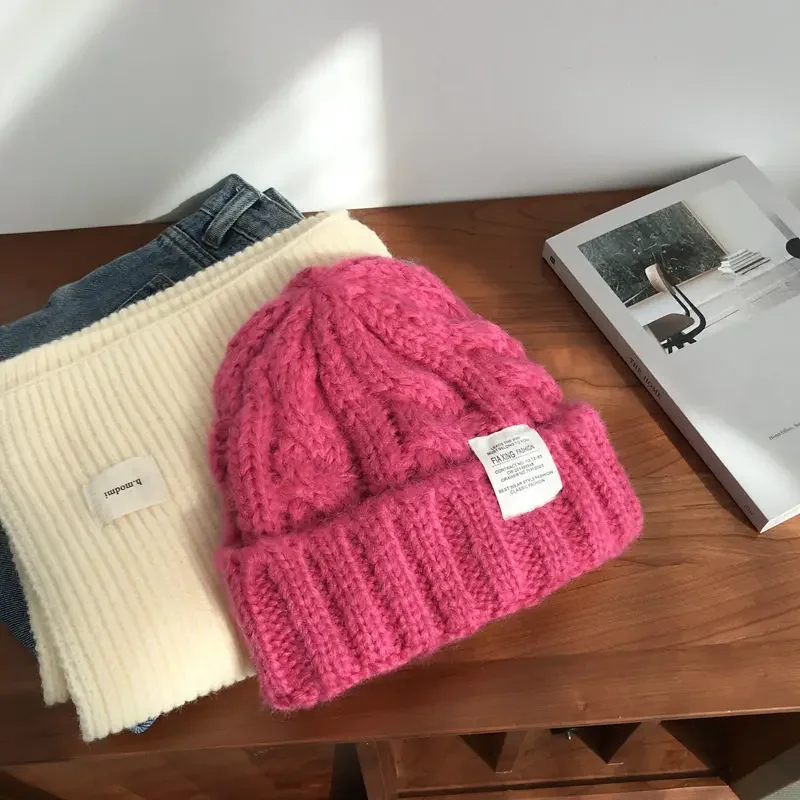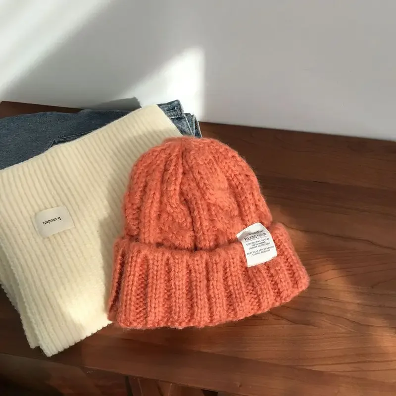New Hat Women's Coarse Knitted Knitted Wool Hat Autumn and Winter Versatile Big Head Circumference Green Loose Ins Trendy F