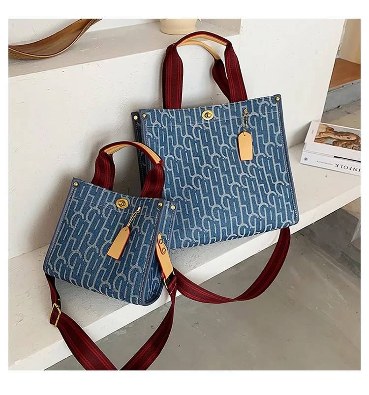 New Portable Korean Canvas Handbag with French Texture Chic Chains Decorated Tote Bag