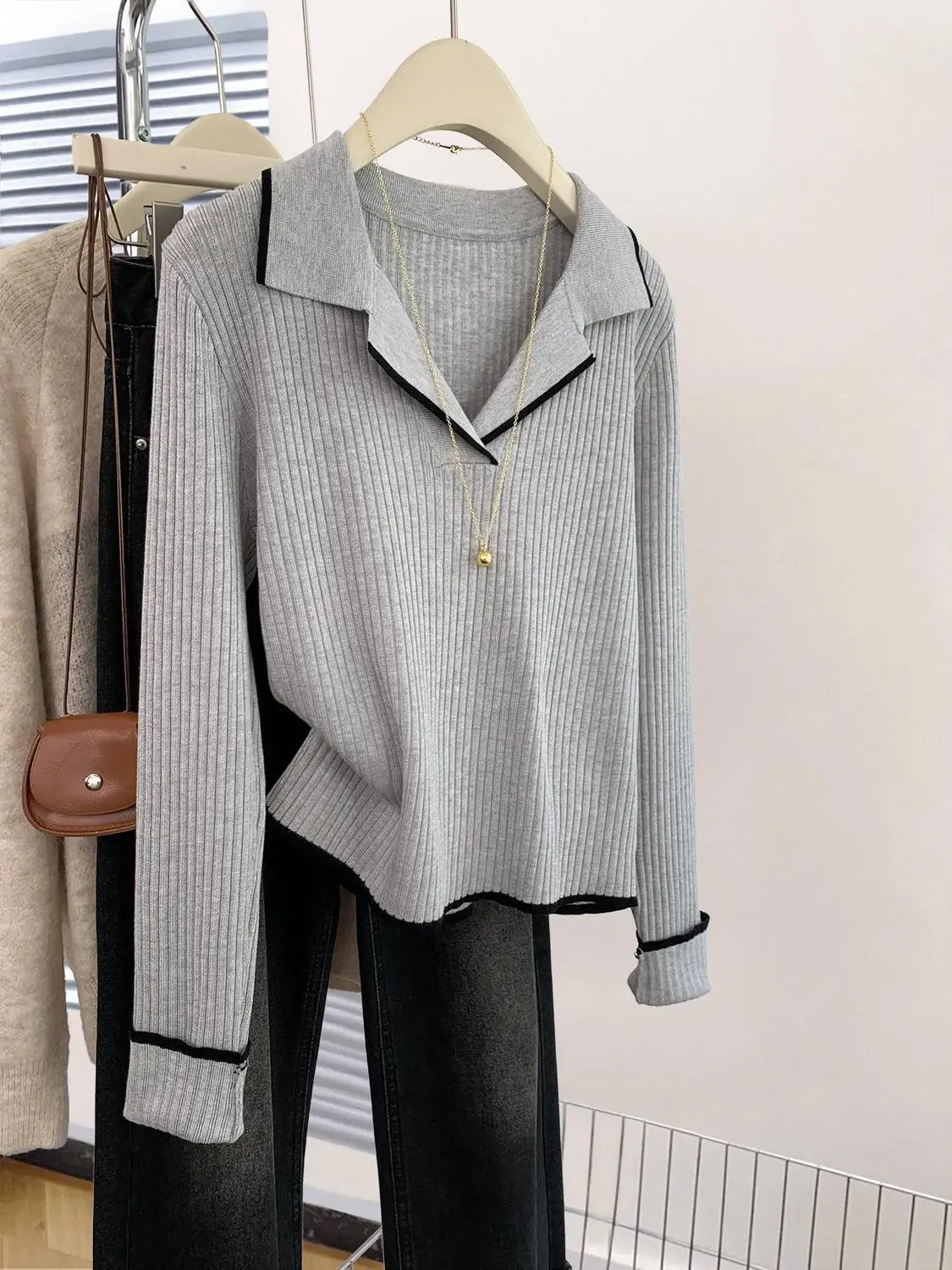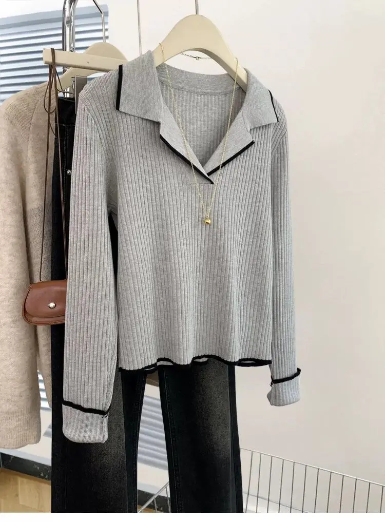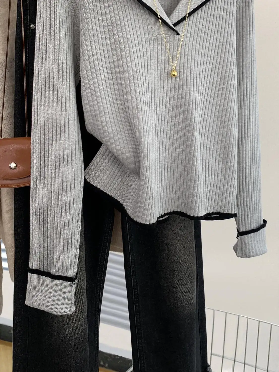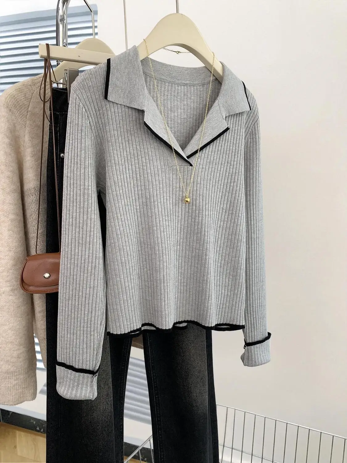 New Spring and Autumn Sweater Women Color-blocking Loose Straight-tube Meat-covering Long-sleeved Top Base Knitted Sweater