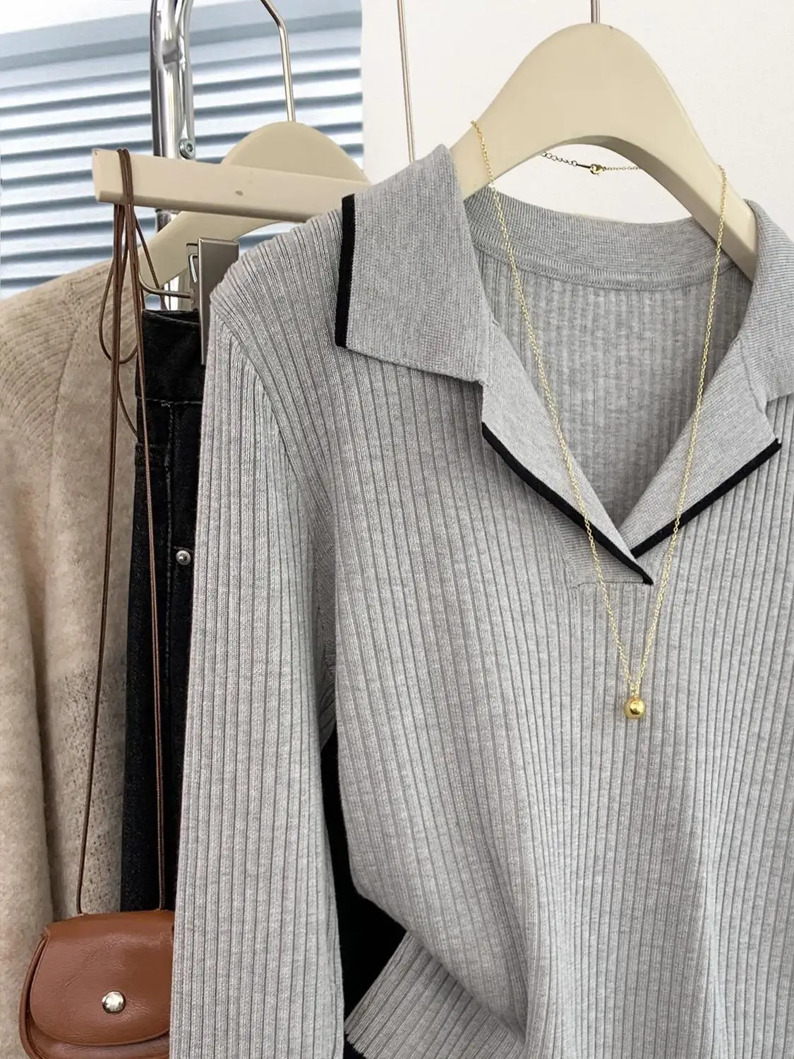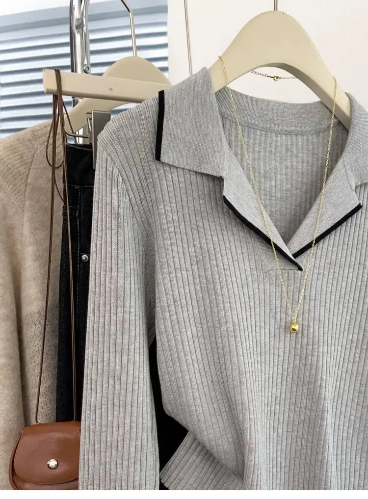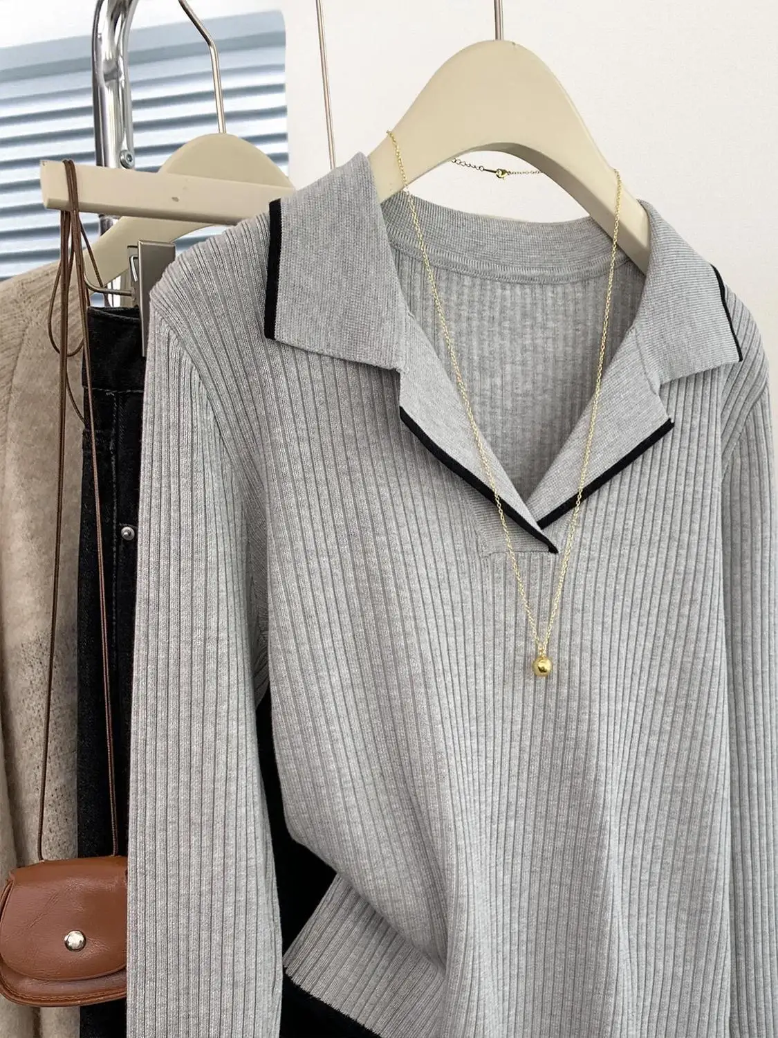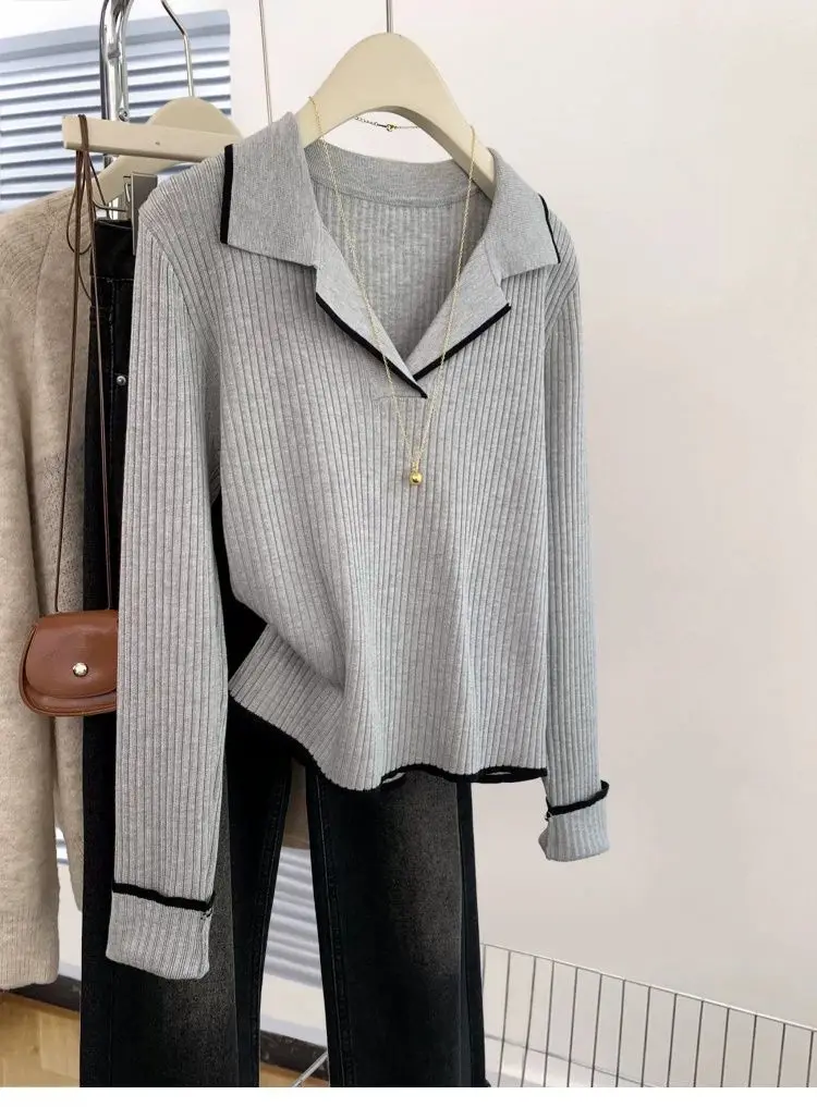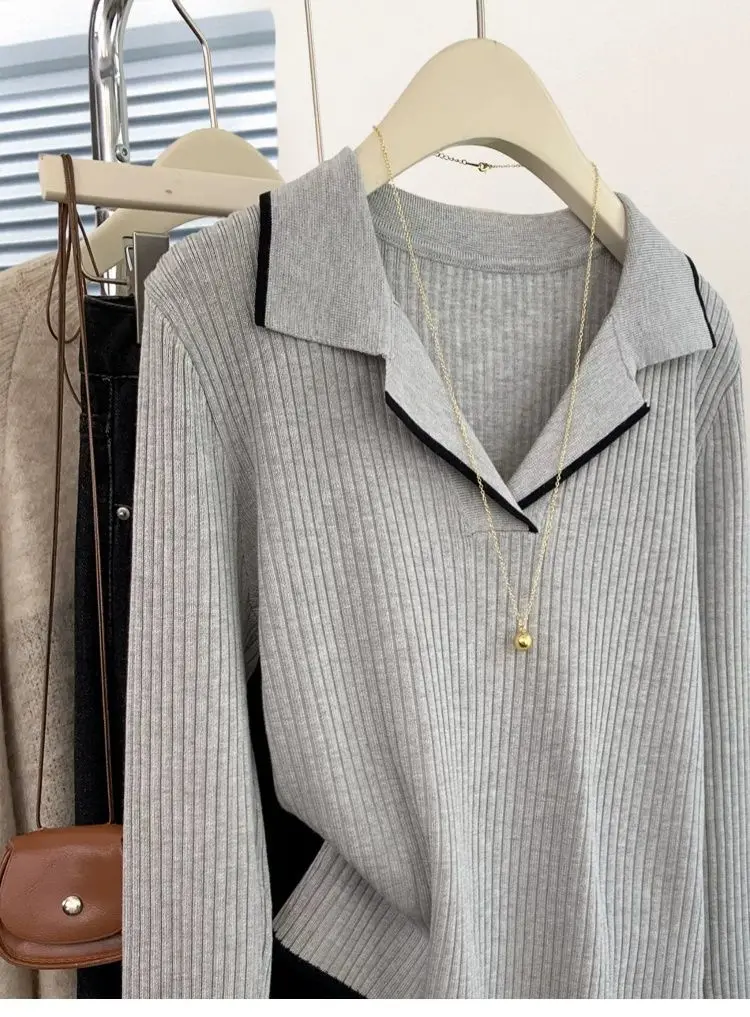 New Spring and Autumn Sweater Women Color-blocking Loose Straight-tube Meat-covering Long-sleeved Top Base Knitted Sweater