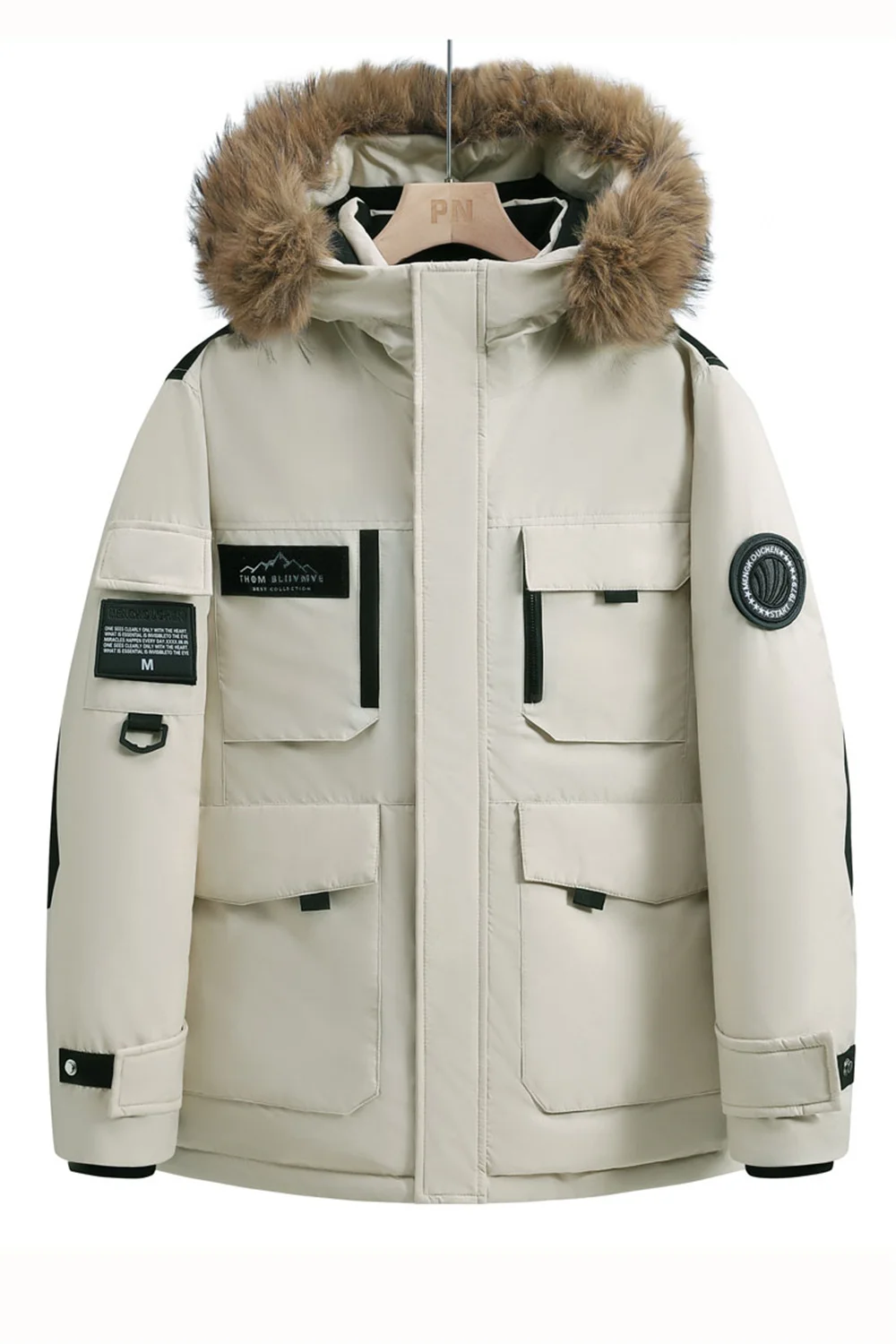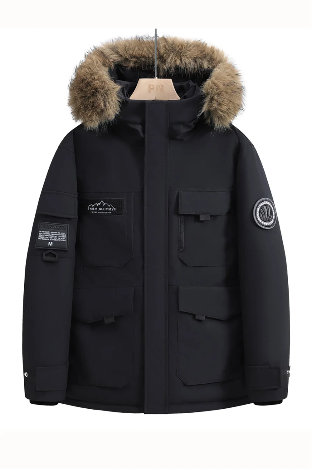 New winter jackets for men with hoods and leather collars. New high-quality waterproof jackets for men. Casual and warm jackets