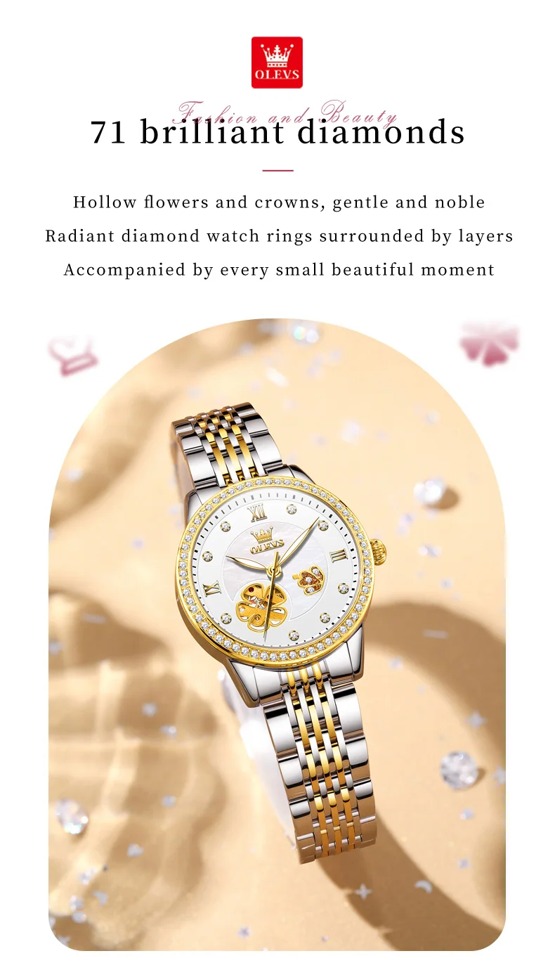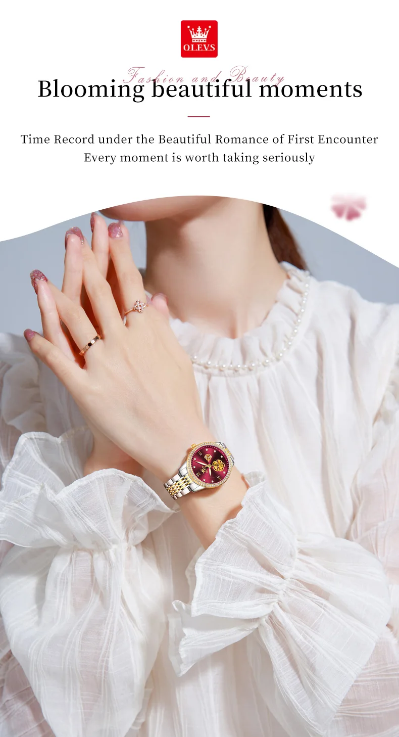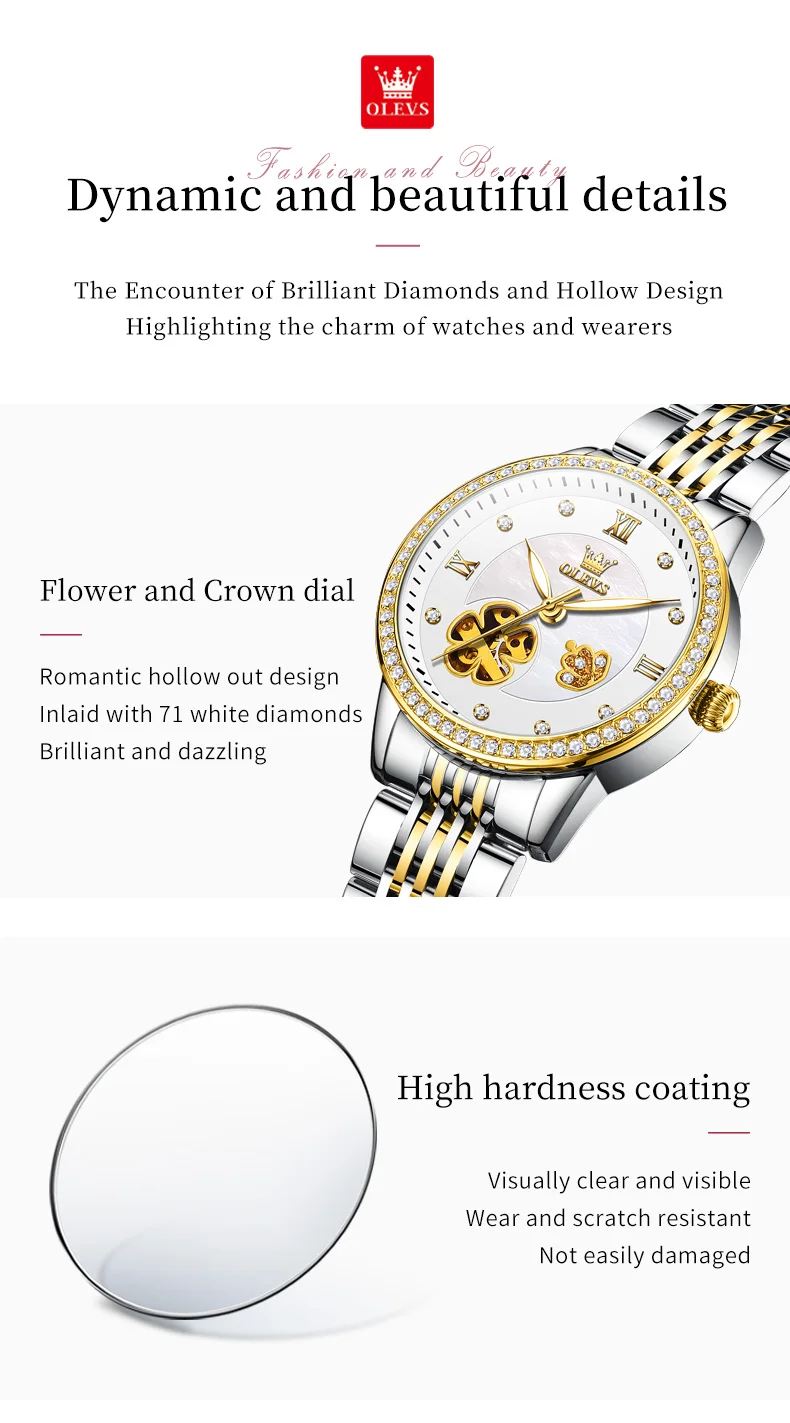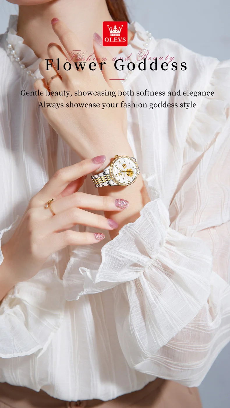 OLEVS 6706 Woman Watch Hollowed Flower Automatic Mechanical Wristwatch for Women Elegant Luxury Brand Ladies Waterproof Watches