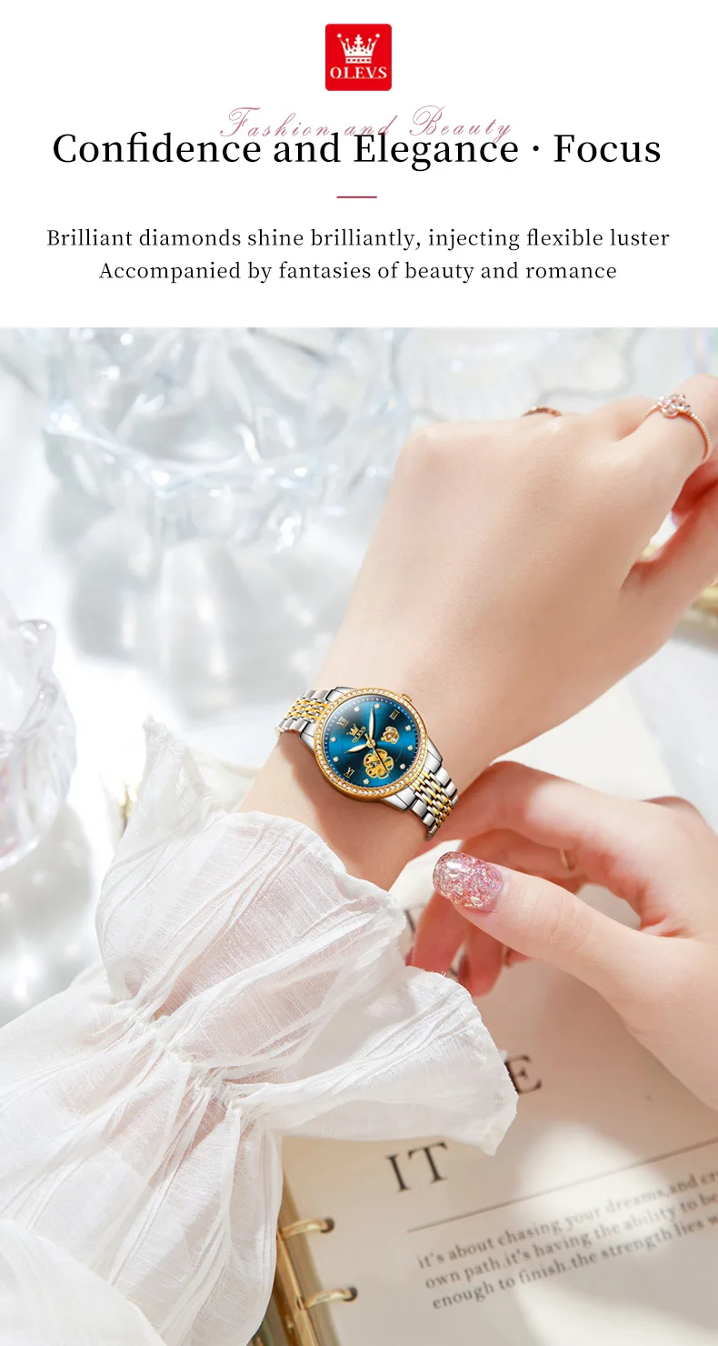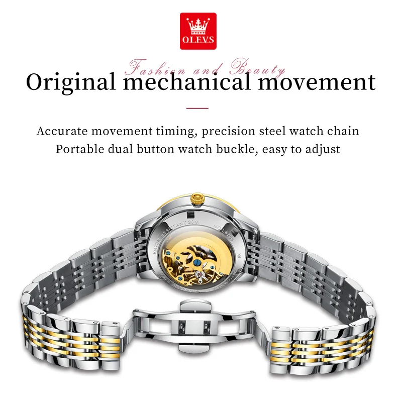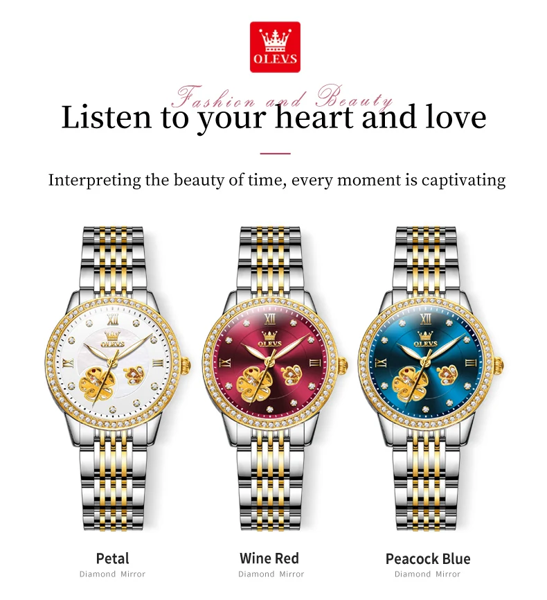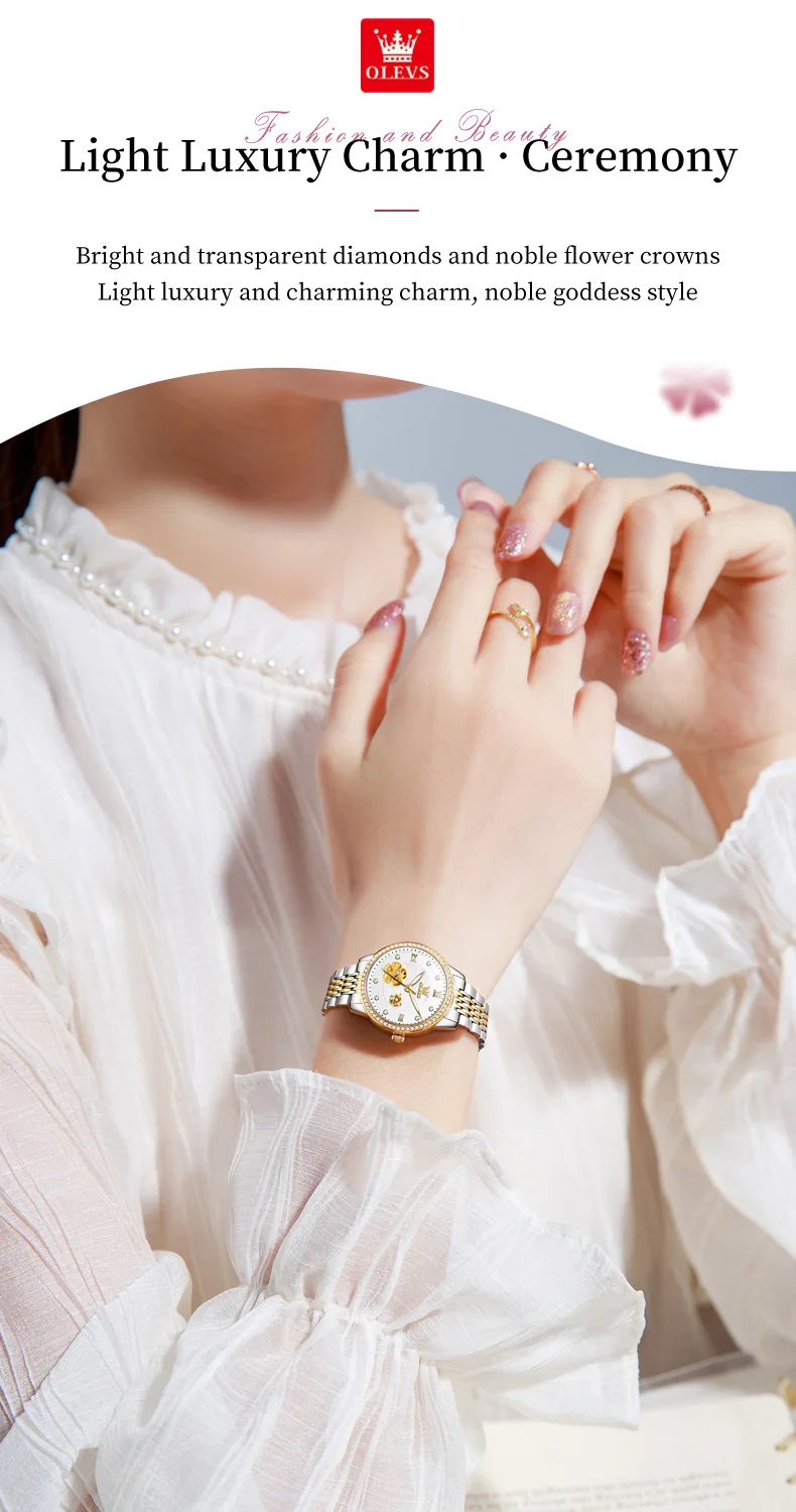 OLEVS 6706 Woman Watch Hollowed Flower Automatic Mechanical Wristwatch for Women Elegant Luxury Brand Ladies Waterproof Watches