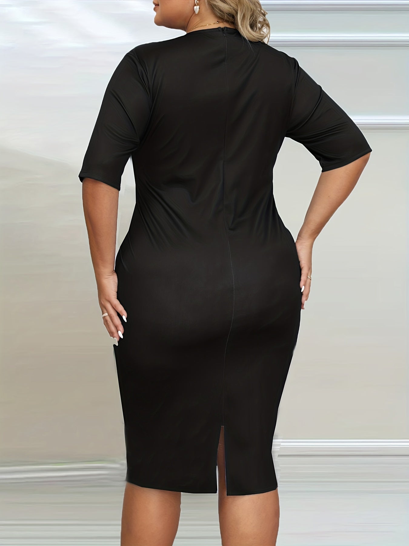 Plus Size Colorblock Half Sleeve Slim Fit Midi Dress, Women's Plus Slight Stretch Boho Midi Dress