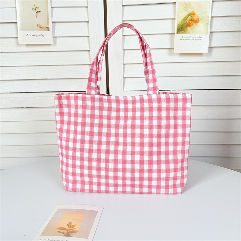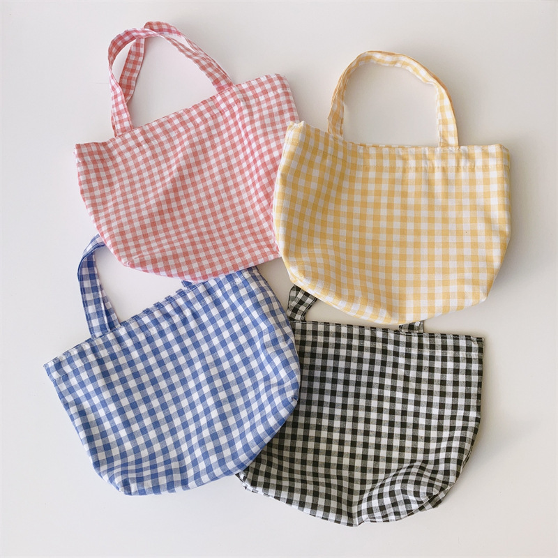 Portable Women's Bento Handbags Simple Plaid Ladies Small Tote Purse Shoulder Bags Retro Female Cloth Reusable Shopping Bag
