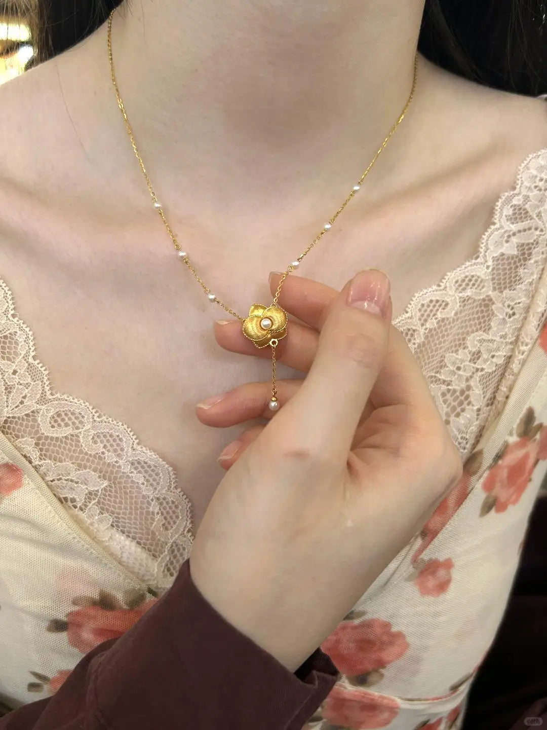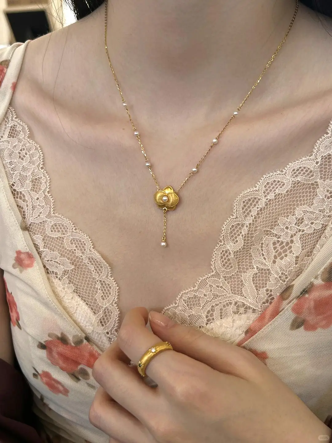 Rich and exquisite velvet gardenia pearl necklace antique gold craftsm brushed pearl collar chain tassel wedding jewelry