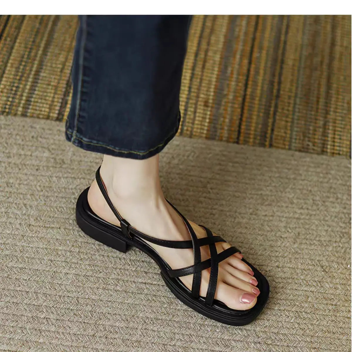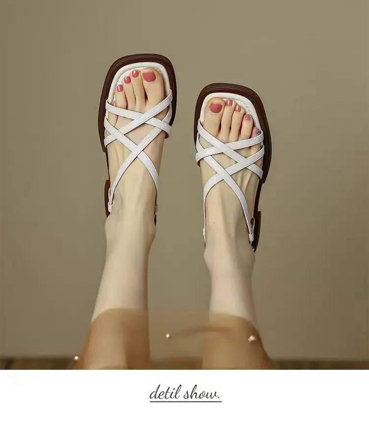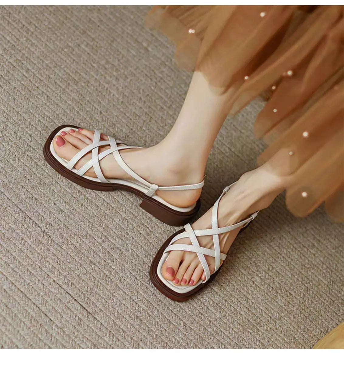 Sandals for Women 2025 Summer Simple Fashionable Flats Elastic Band Outdoor Beach Shoes Casual Ladies Rome Sandals 232