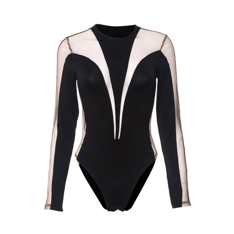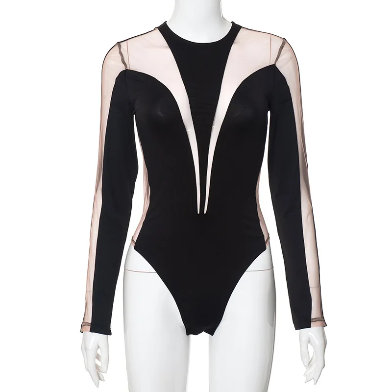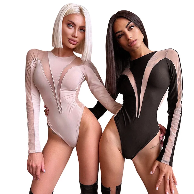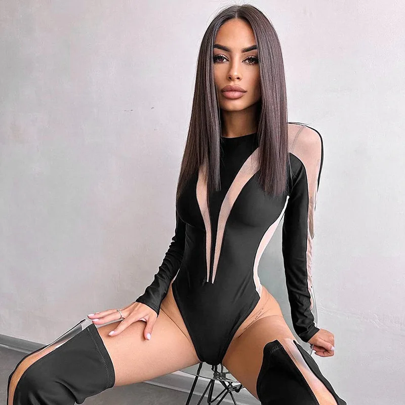 See Through Sexy Bodysuit Lingerie Long Sleeve Lenceria Tranparente One-Pieces Body Feminino Skinny Corset Top Women Rave Outfit