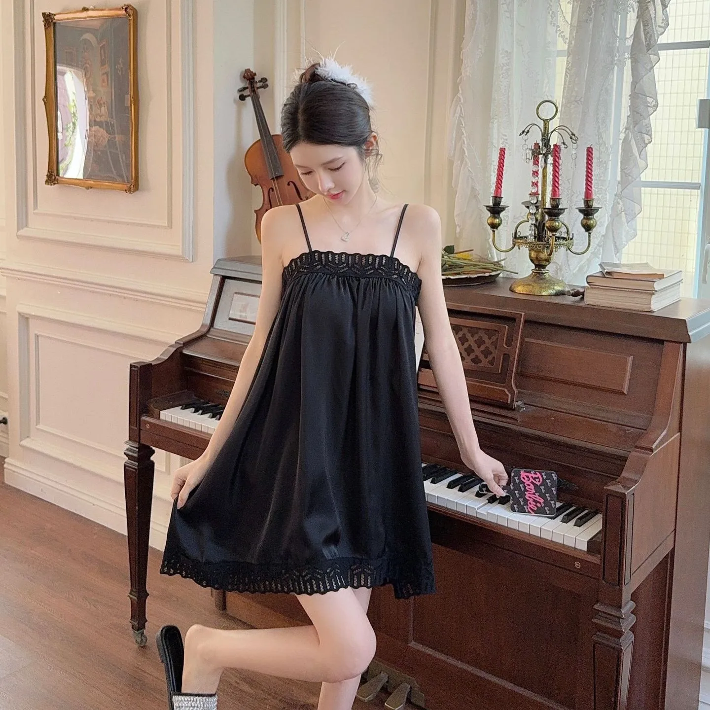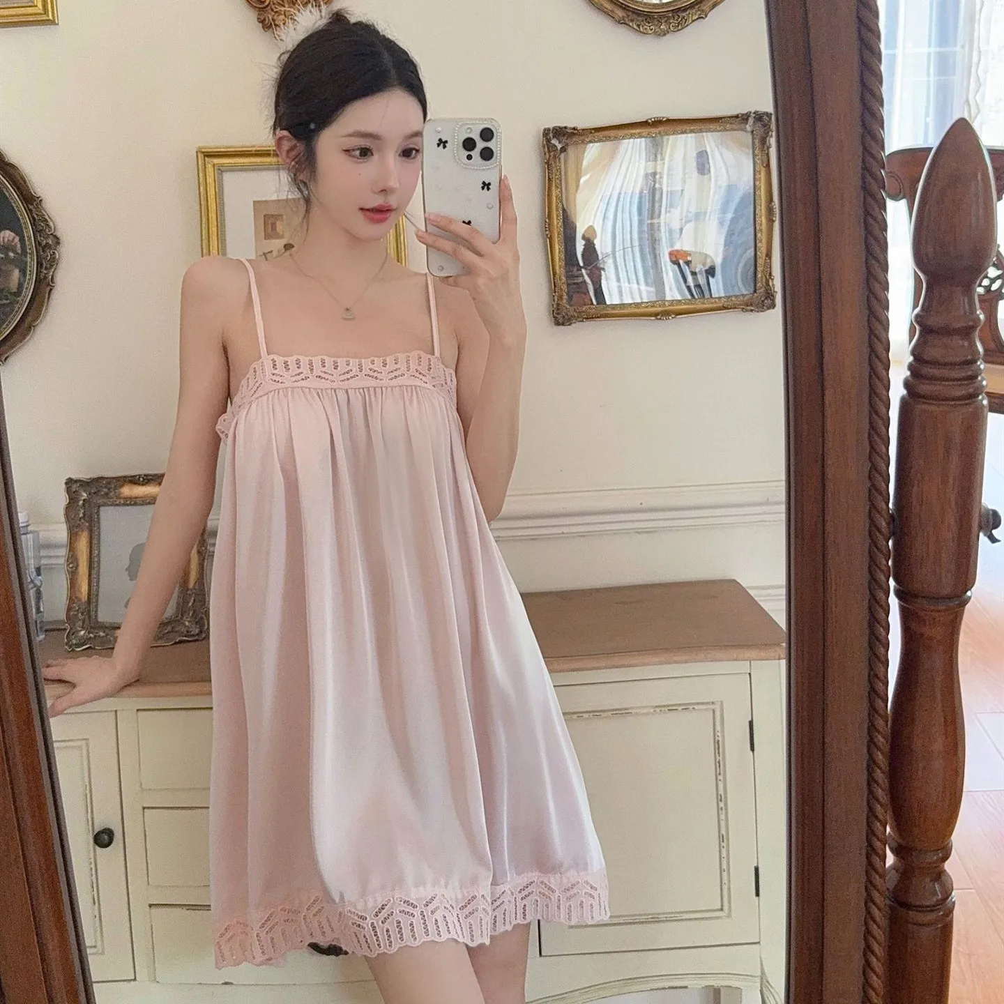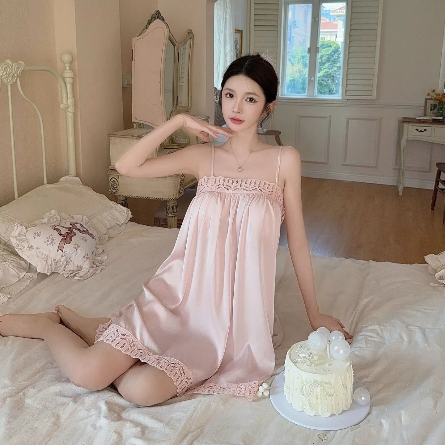 Sexy Nightie Woman Lace Trim Nightdress High Quality Satin Sleepwear Solid Color Soft Home Dress Female Silk Nightgown