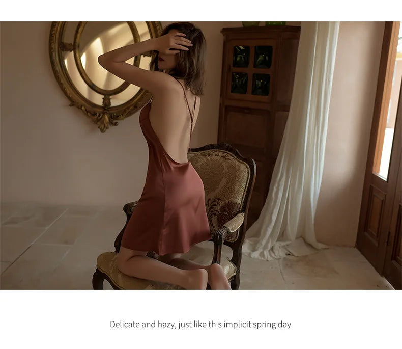 Sexy nightwear women Sleepwear Deep V Suspender Nightdress Beauty Back Simulation Silk Nightgowns Thin Home Clothes