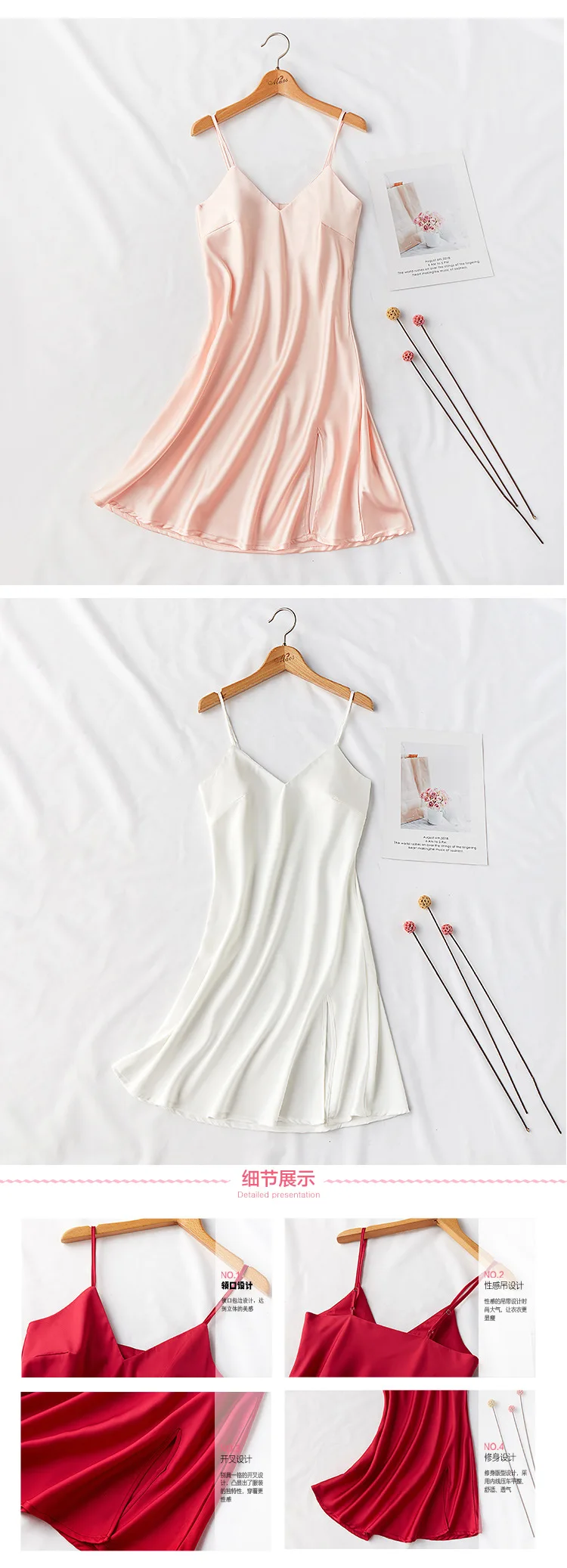 Sexy Silky Women Sleep Robe Strap Top Sleepwear V-Neck Nightdress Lady Home Wear Nightgown Bath Gown Sleepshirts Bathrobe M-XXL
