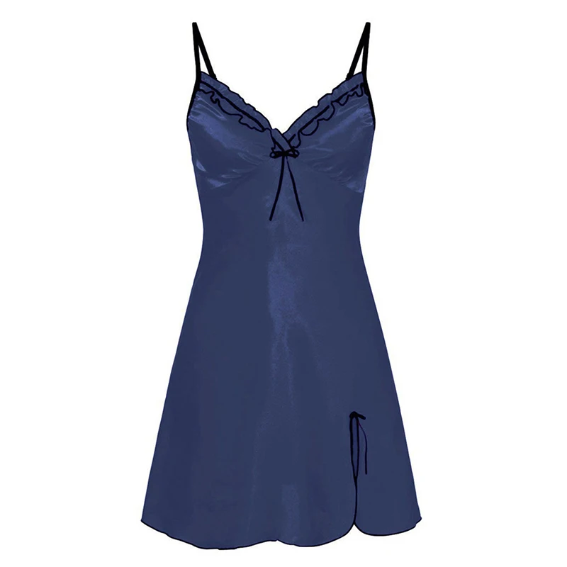 Sexy Sleepwear Women Lace Silk Satin Night Dress Sleeveless Nighties V-neck Nightgown Plus Size 2XL Nightdress Summer Nightwear