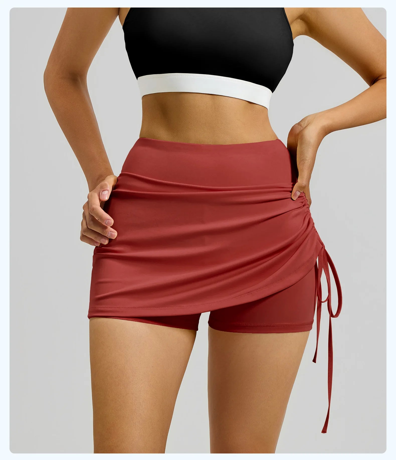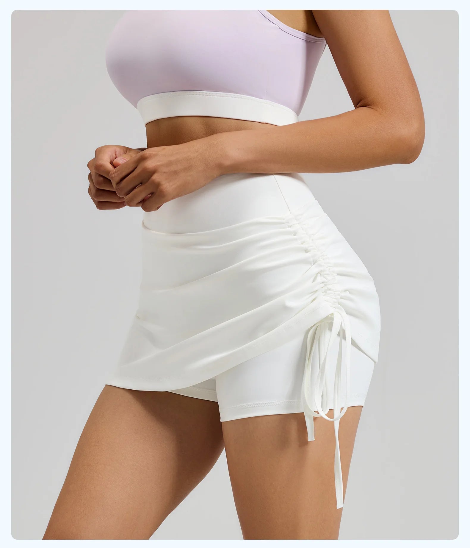 Shirring Sports Skirts with Safety Trousers for Women High Elastic Fashion Casual Fitness Skirts Fake Two Pieces Yoga Skirts