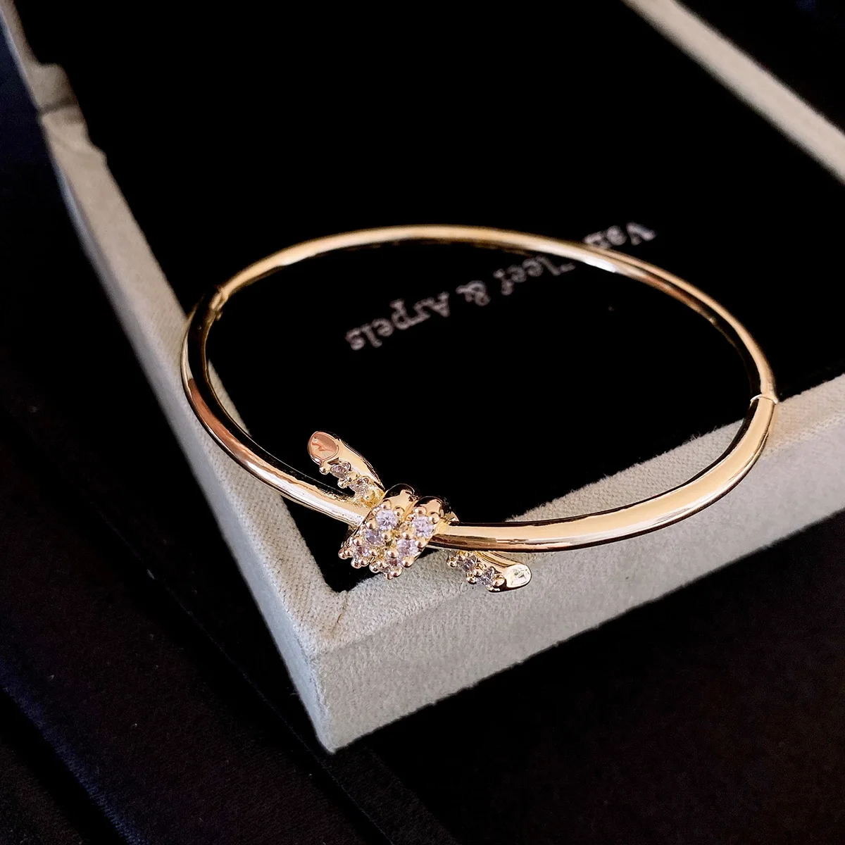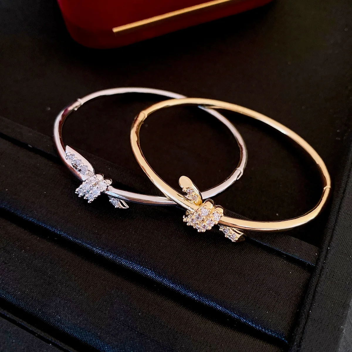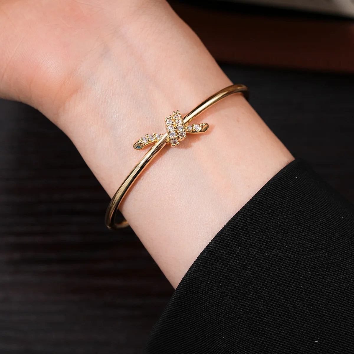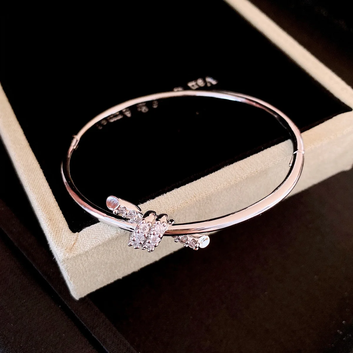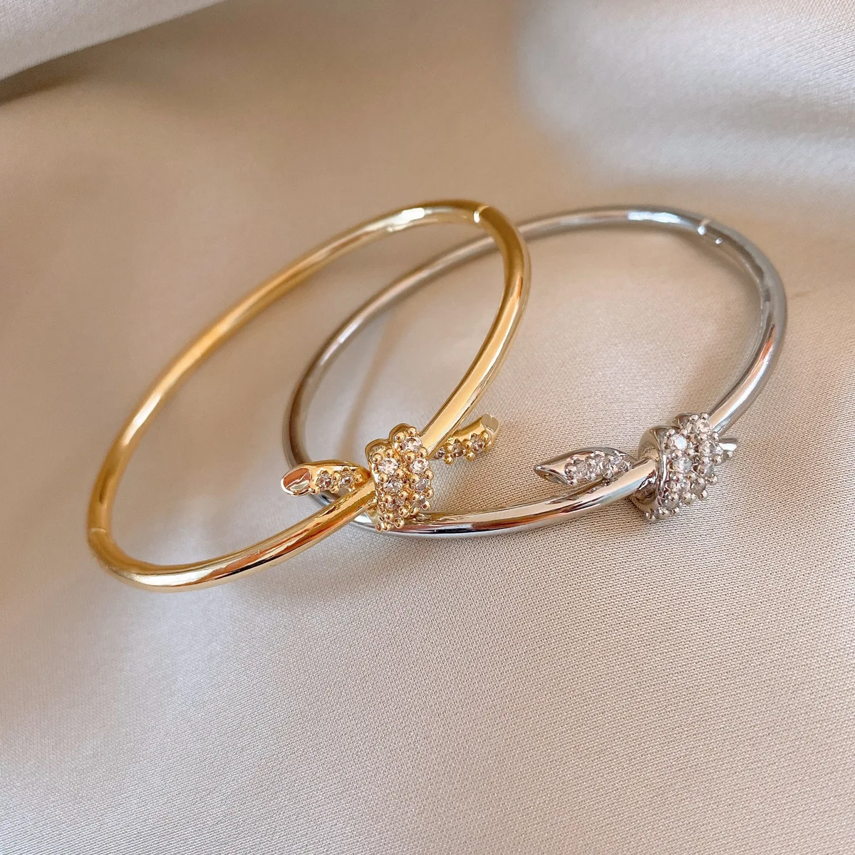 Simple Glossy Zircon Knot Bangles for Women 2025 Korean Fashion Bracelet Light Luxury High-end Wedding Bride Accessories