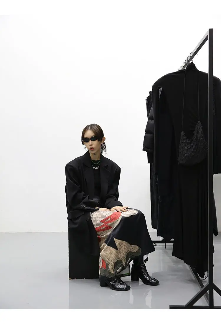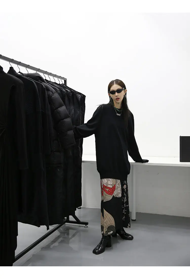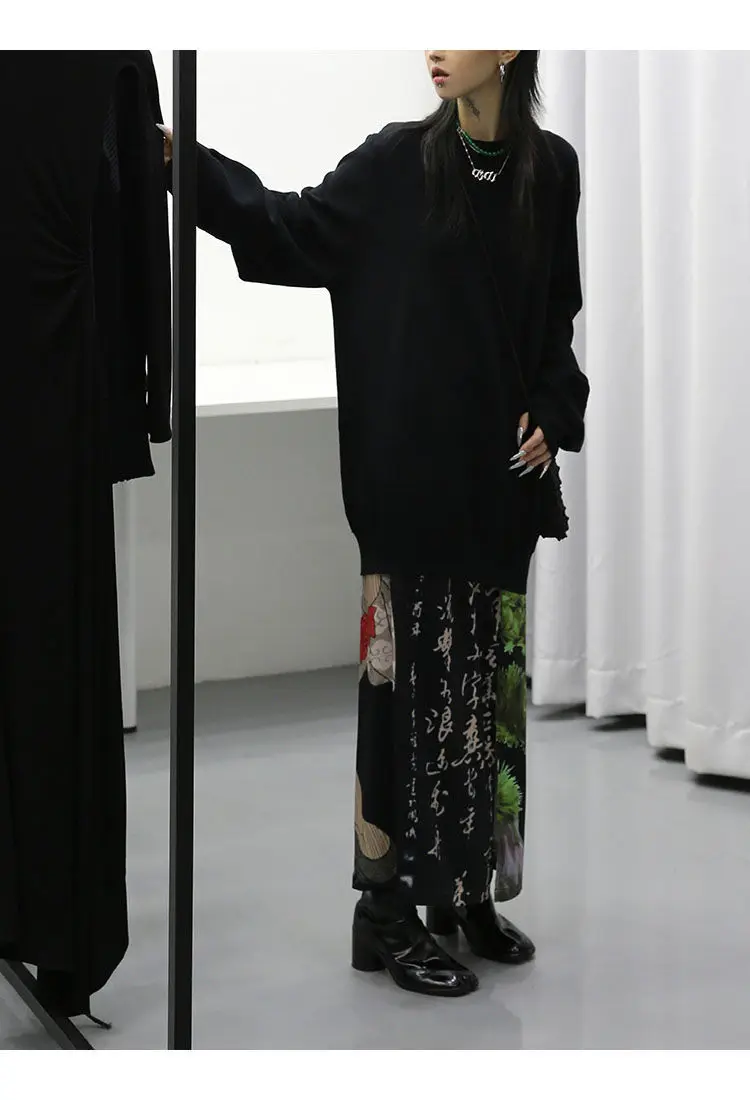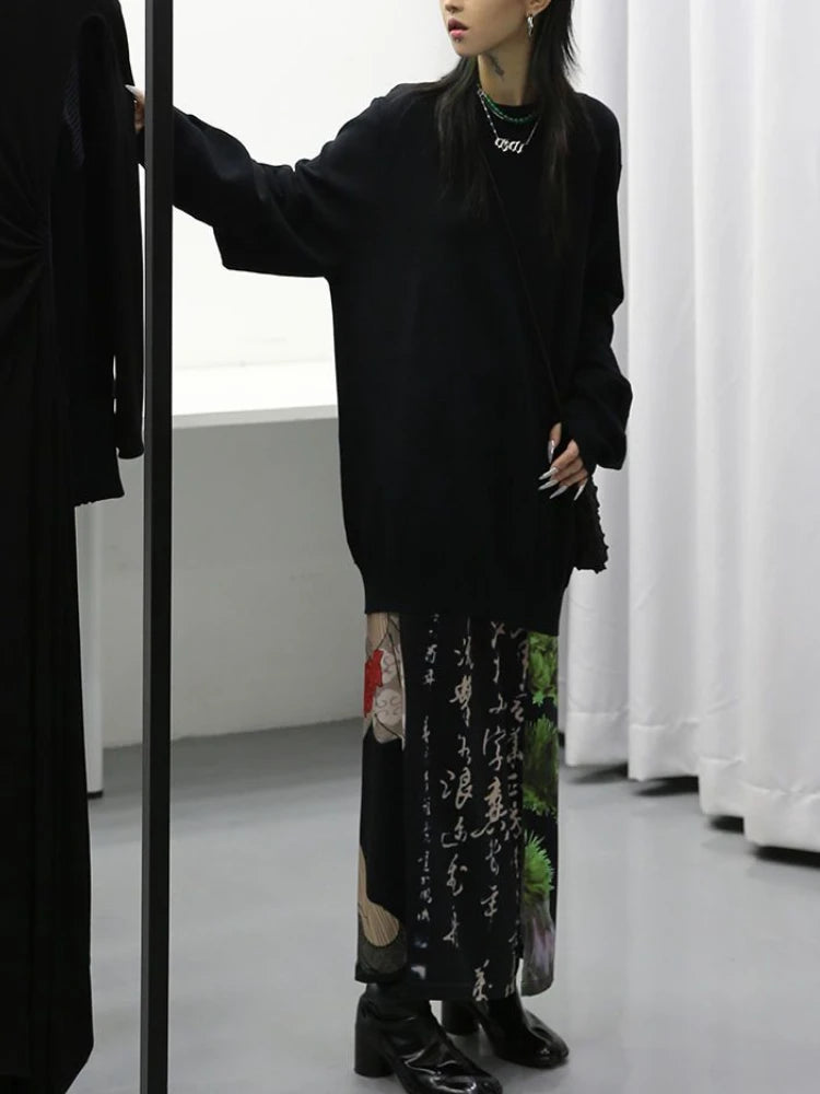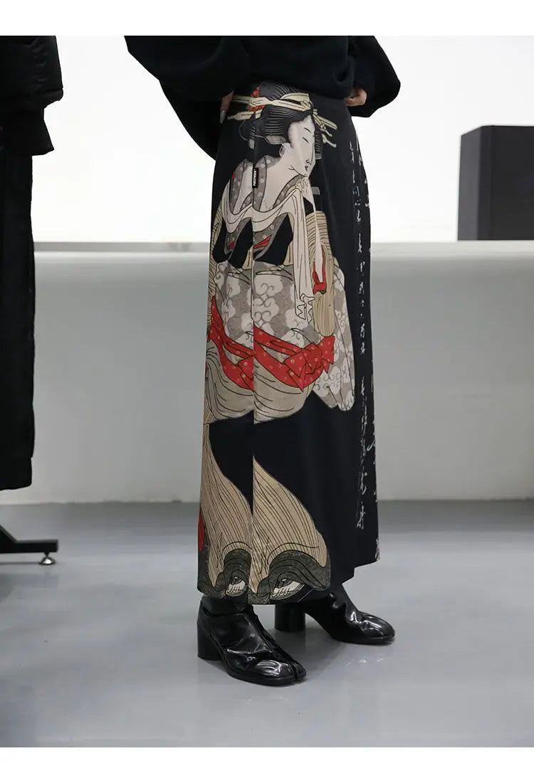 Skirts Women Cool Design Side-Slit Retro Leisure Simple Chinese Style Print All-match Comfortable High Waist Fashion Streetwear