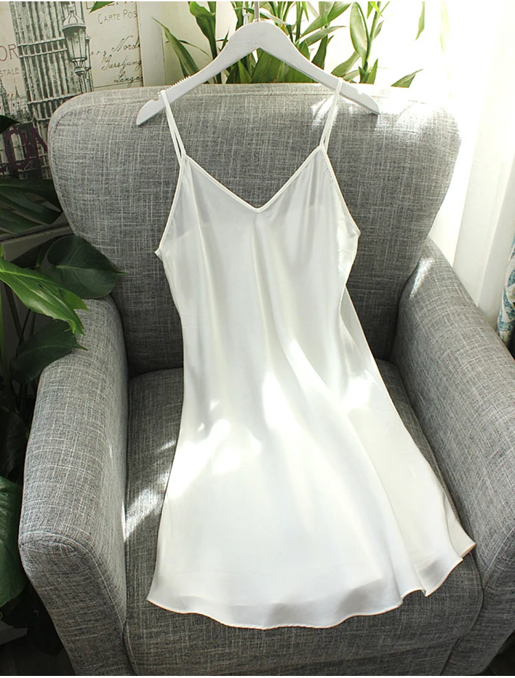 Sleeping dress 100% Real Silk Full slips nighties for women Long Camisole Chemise Bridesmaid mini dress V-Neck