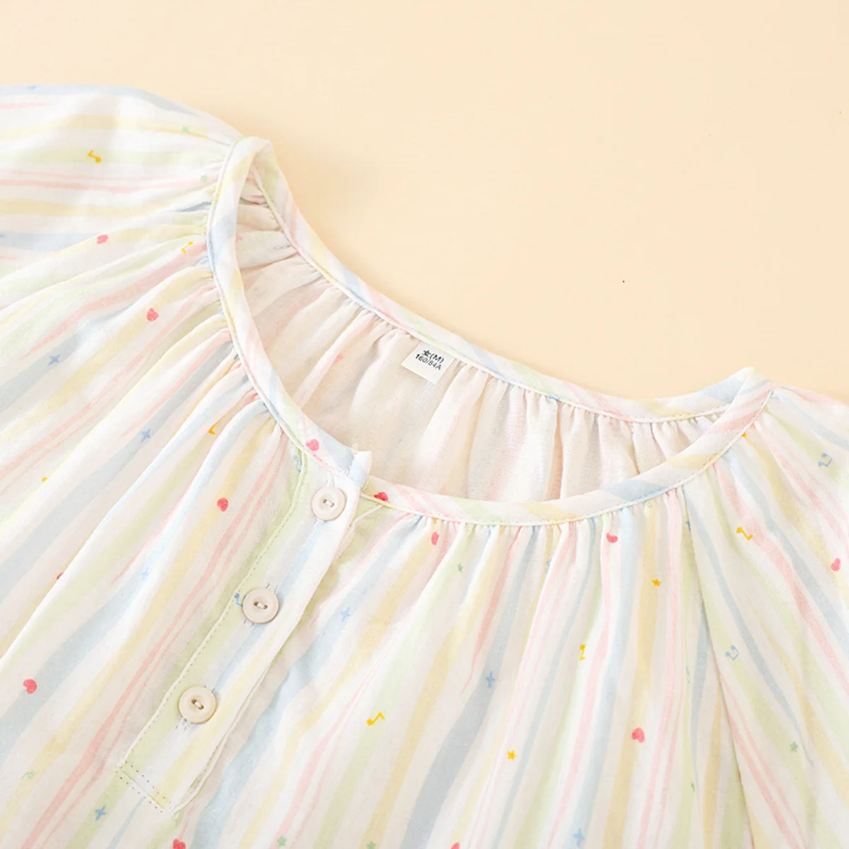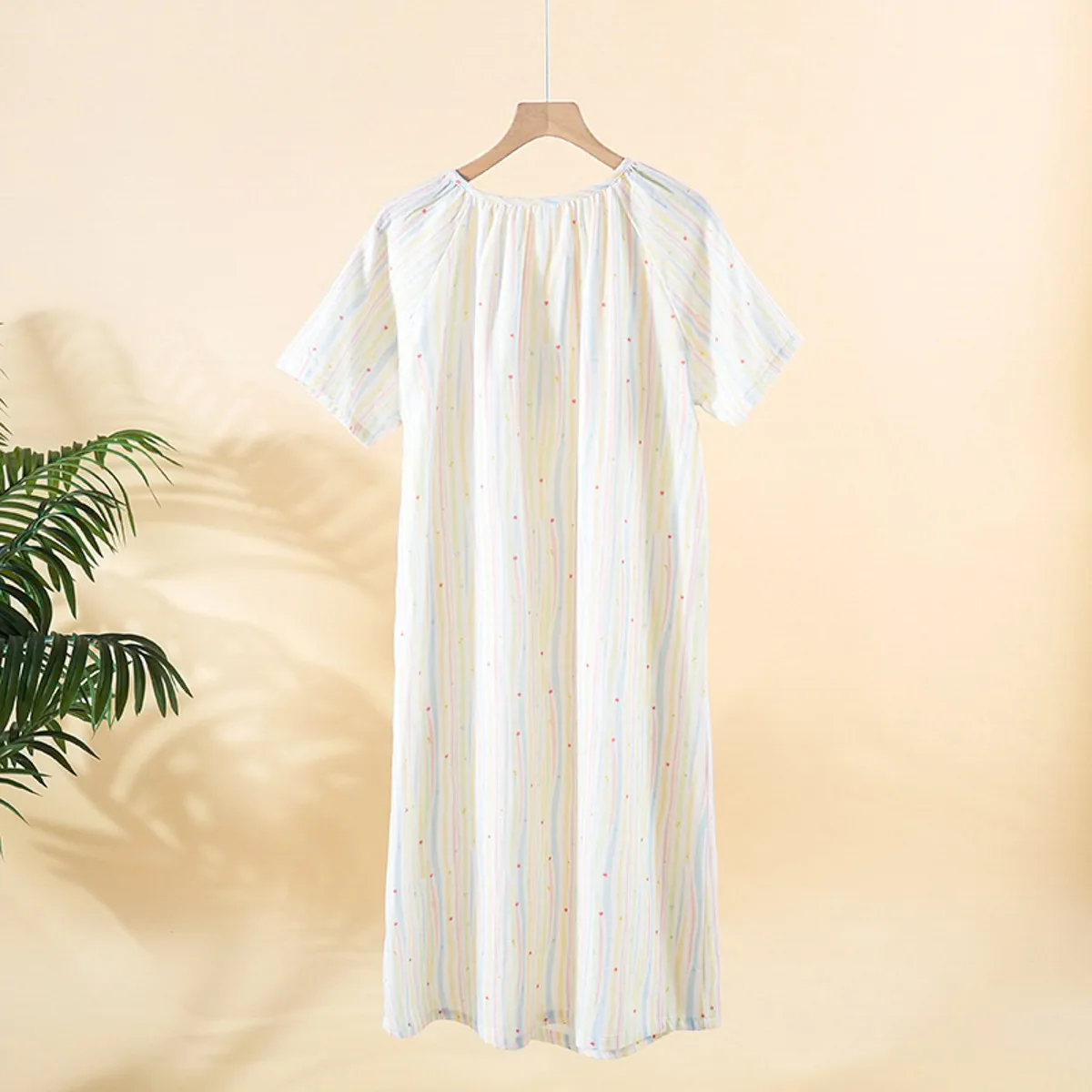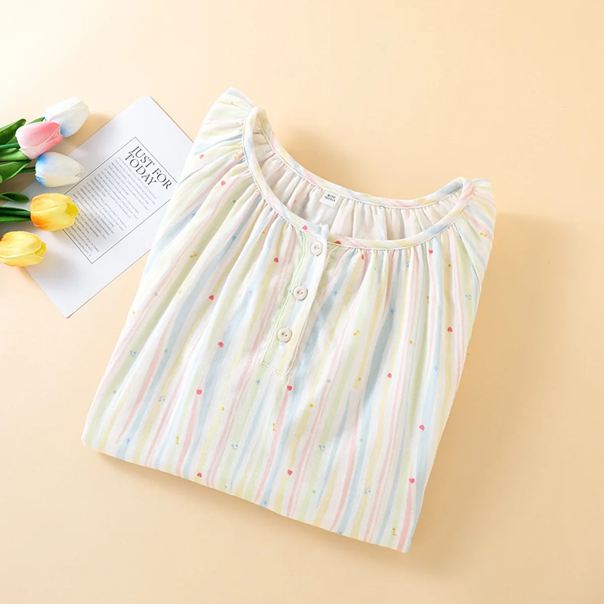 Sleeping Nightdress for Women Thin Cotton Homewear Colorful Striped Printed Pink Color Girls' Home Clothes Women Nightwear