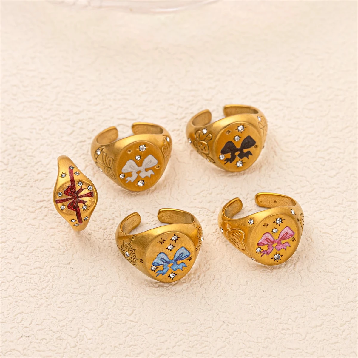 Stainless steel painted bow ring, niche and personalized design, gold-plated and color preserving ring