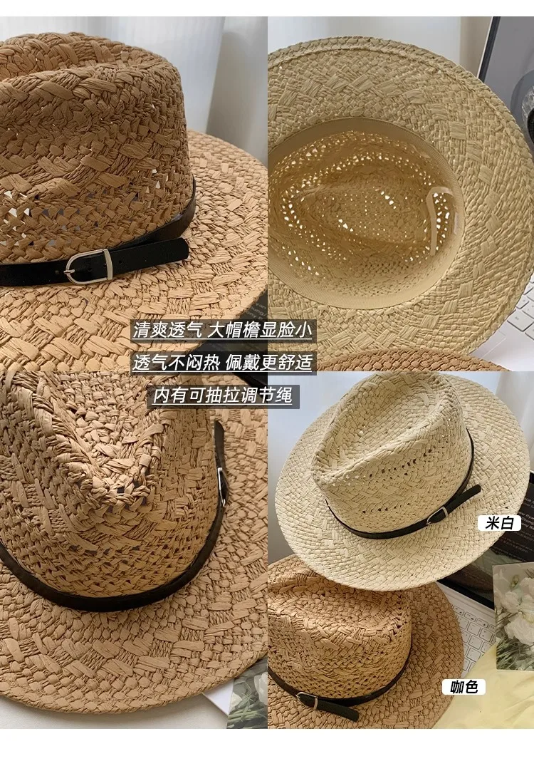 Straw Western Cowboy Hat for Women Men Classic Vintage Hollow Out Unisex Curled Wide Brim Sun Hat Fishing Hat Climbing Cap