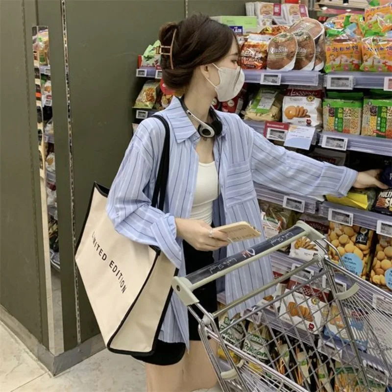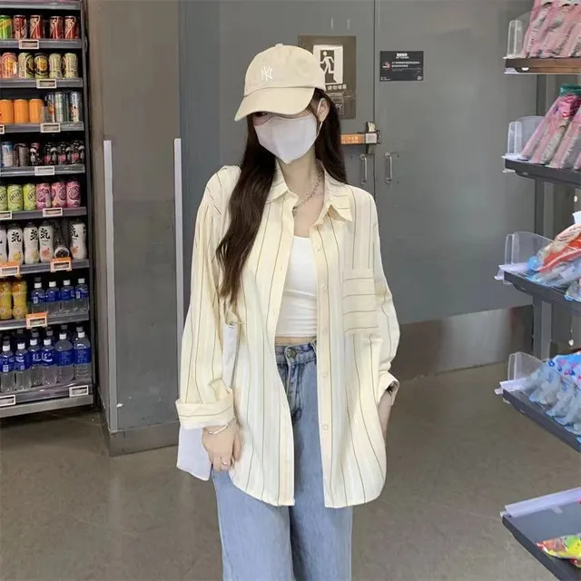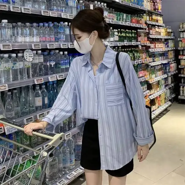 Striped Shirts & Blouses For Women Elegant Chic High Quality Clothing Trend 2025 Pretty Promotion Youth Cool Button Up Woman Top