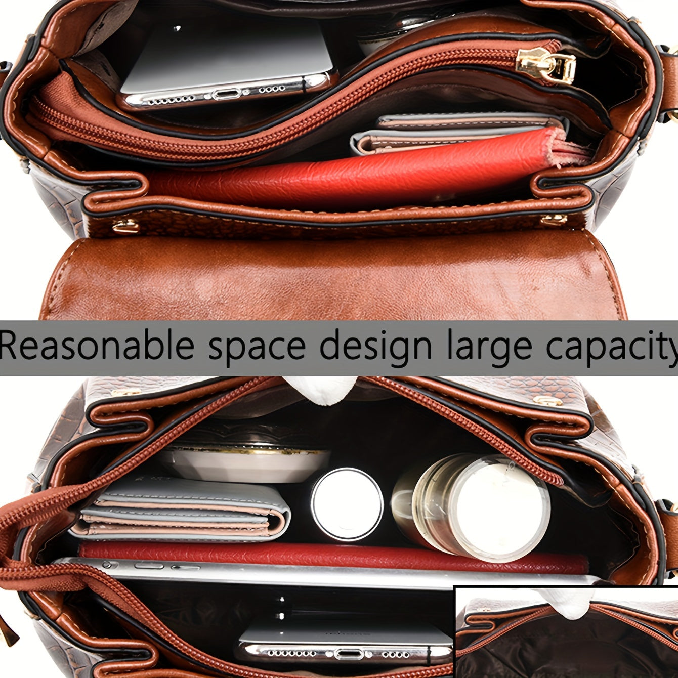 Stylish Shoulder Bags For Women, Crocodile Pattern Handbags, Vintage Crossbody Flap Purse