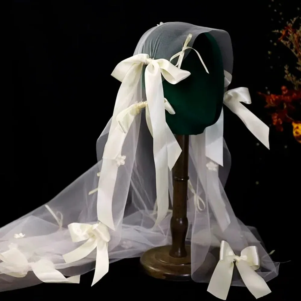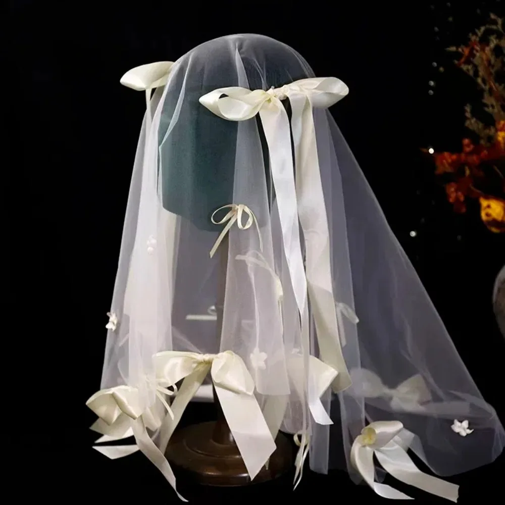 Stylish Versatile Bridal Veils Bow Tulle Bride Head Gauze Fairy White Wedding Headwear Bride Accessories