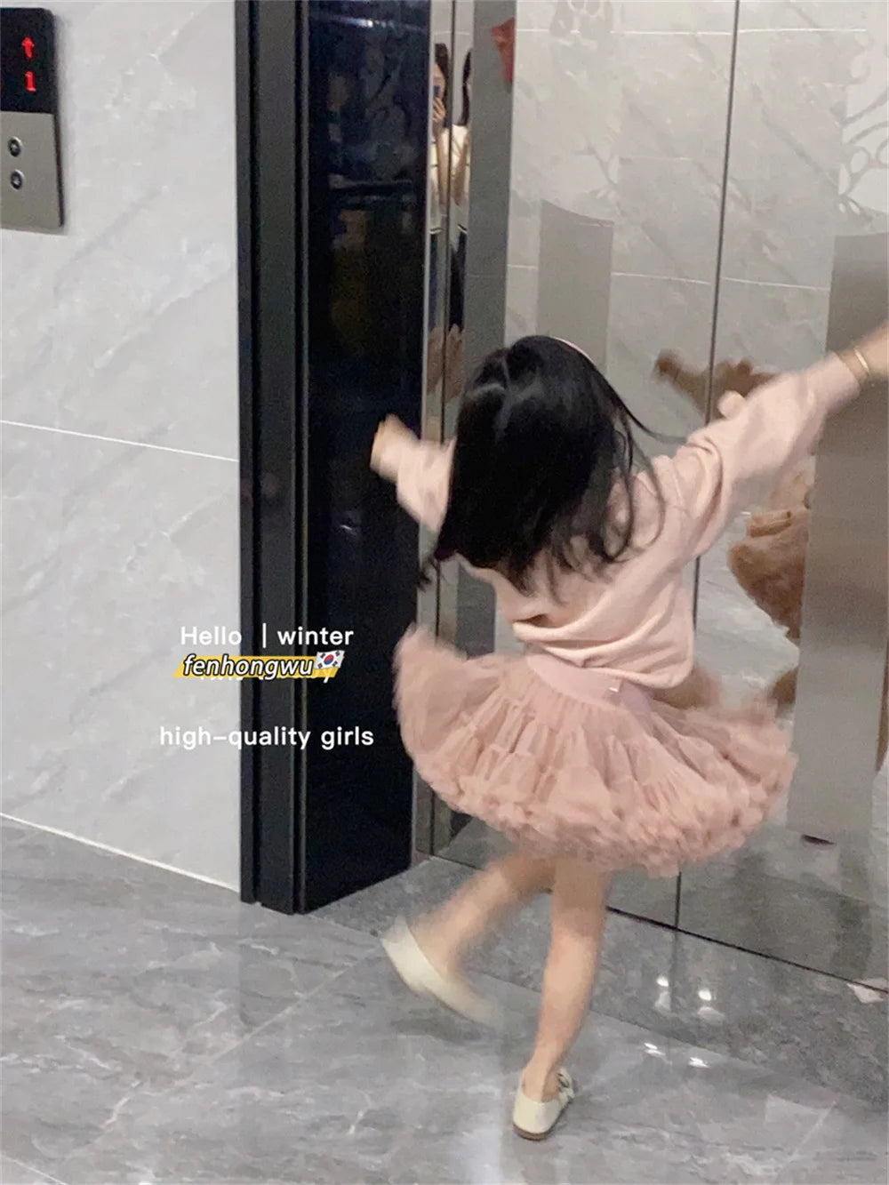 Sweater Autumn Winter Powder Lovely Tender Simple Fashion 2024 Striped Pink Striped Childrens Clothing lovely sweet