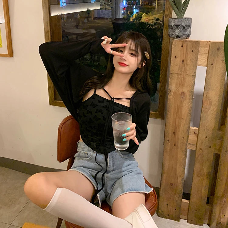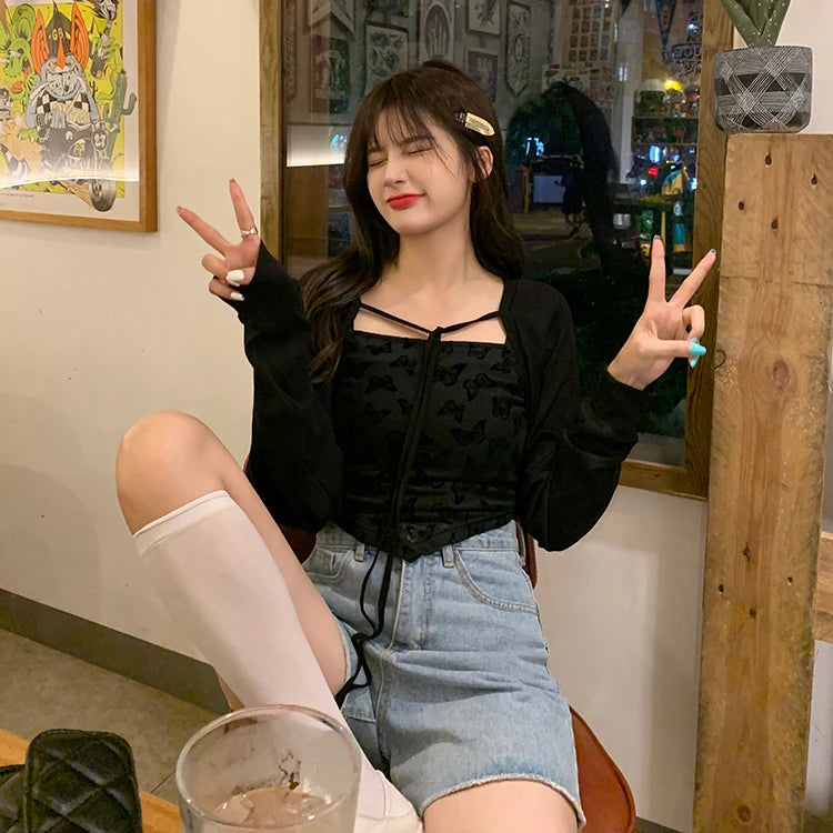 Sweater Cardigan Women Summer Thin All-match Sun-proof Lace-up Simple Fashion Street Wear Vacation Popular Casual Vintage Chic