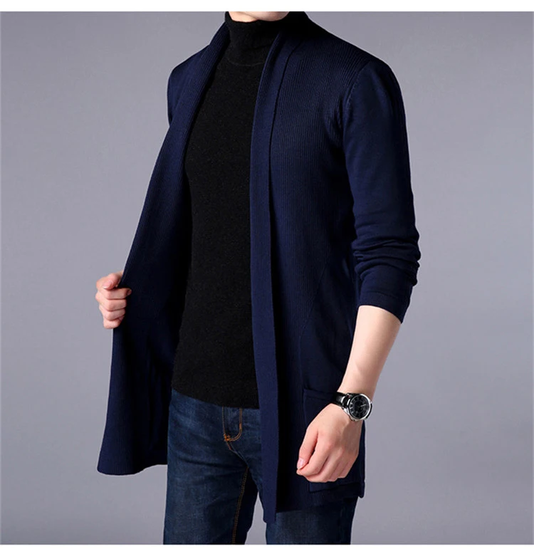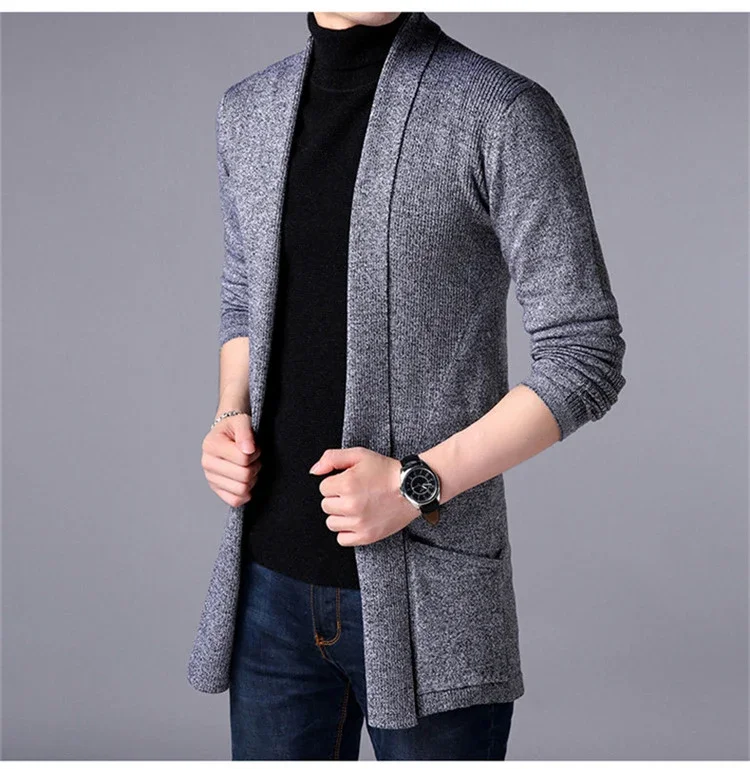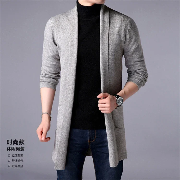 Sweater Coats Men New Fashion 2025 Autumn Men's Slim Long Solid Color Knitted Jacket Fashion Men's Casual Sweater Cardigan Coats