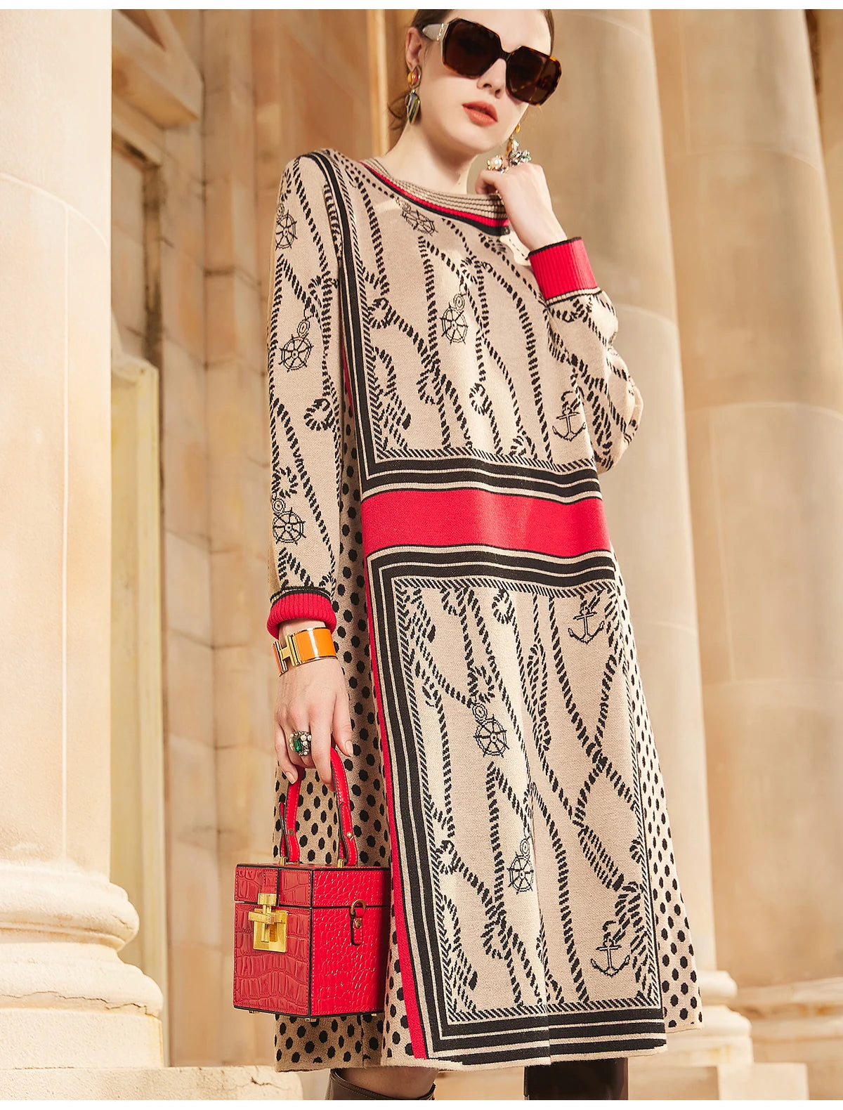 Sweater Dresses Women's Knitted Dress For Spring Autumn 2024 New Half Turtleneck Pullover Loose Thicken Warm Bottom Clothing