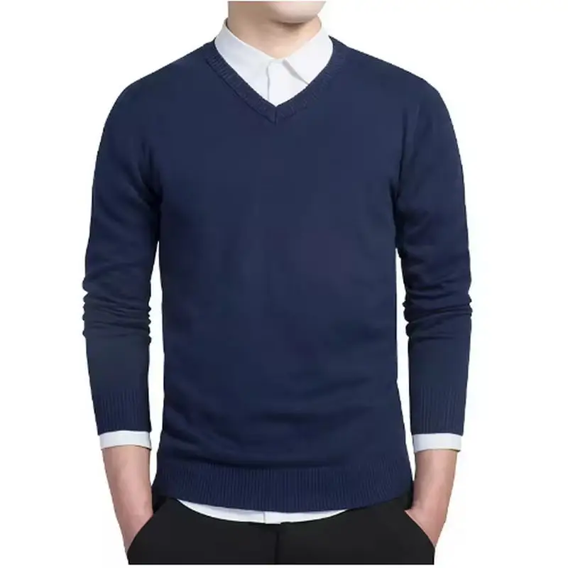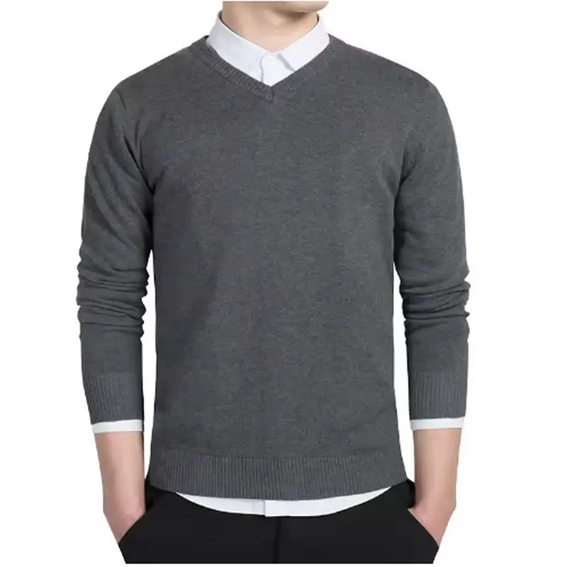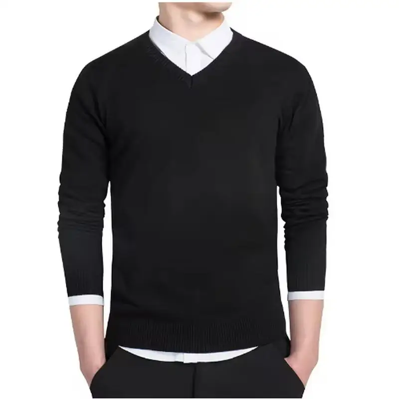 Sweater Men 2025 Autumn Casual Pullovers Men V-Neck Solid Cotton Knitted Brand Clothing Slim Fit Male Sweaters Pull Homme