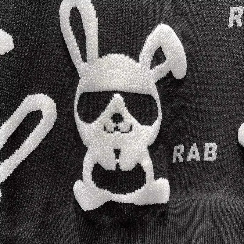Sweater Men's Autumn Winter New Personality Rabbit Round Neck Casual Knitted Sweaters Flocking Print Long Sleeves Slim Pullover