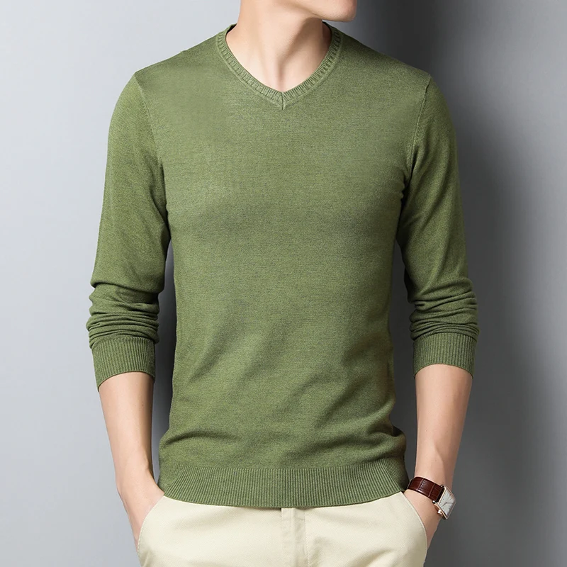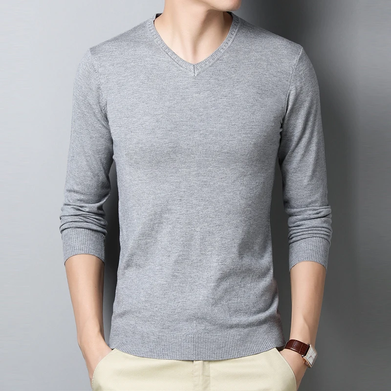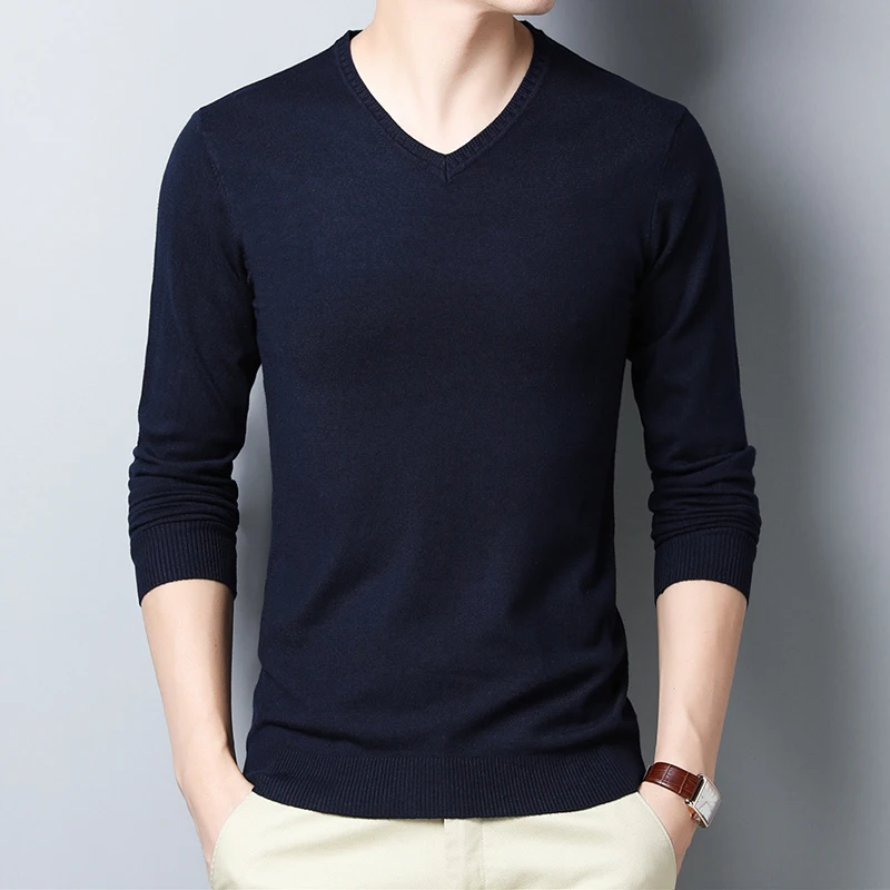 Sweater men's solid color sweater V-neck sweater thin design spring and autumn winter knitted base sweater