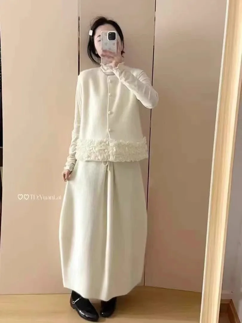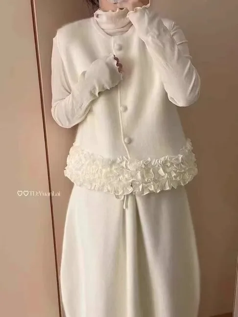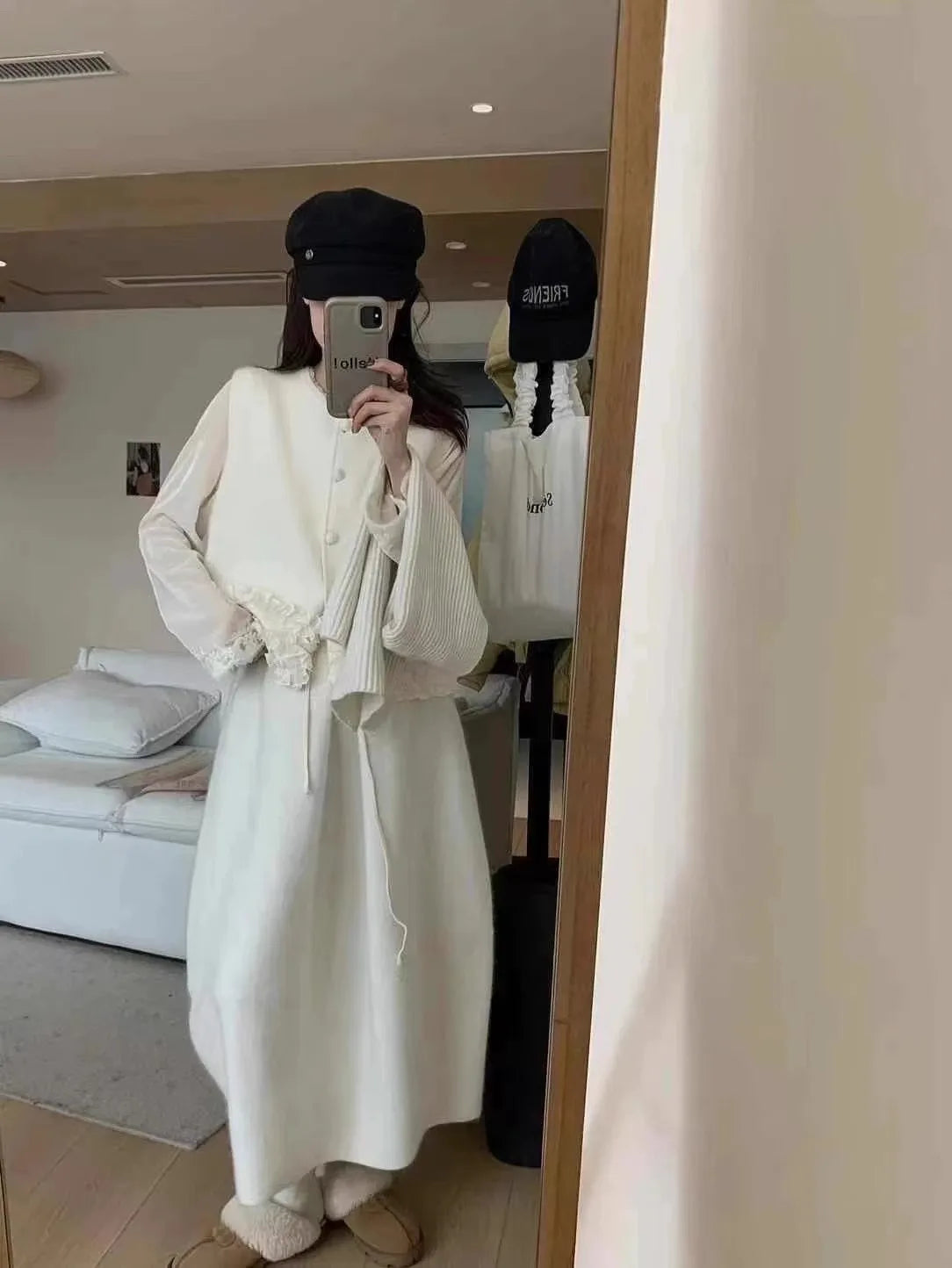 Sweater Vest 2025 Winter New Korean Temperament Splicing Lace Thickened Women's Winter Sweatshirt