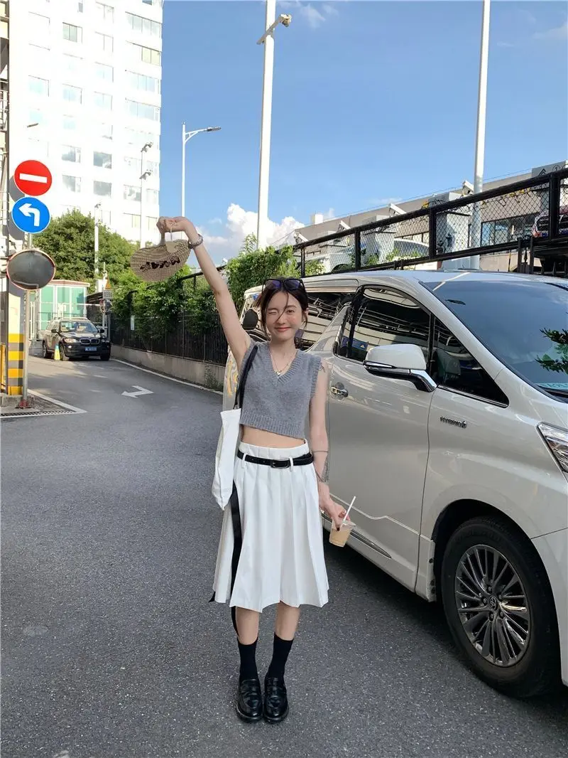 Sweater Vests Women Simple All-match Basic V-neck Casual Spring Vintage Knitting Fashion Ulzzang Ladies Temperament Classic Chic