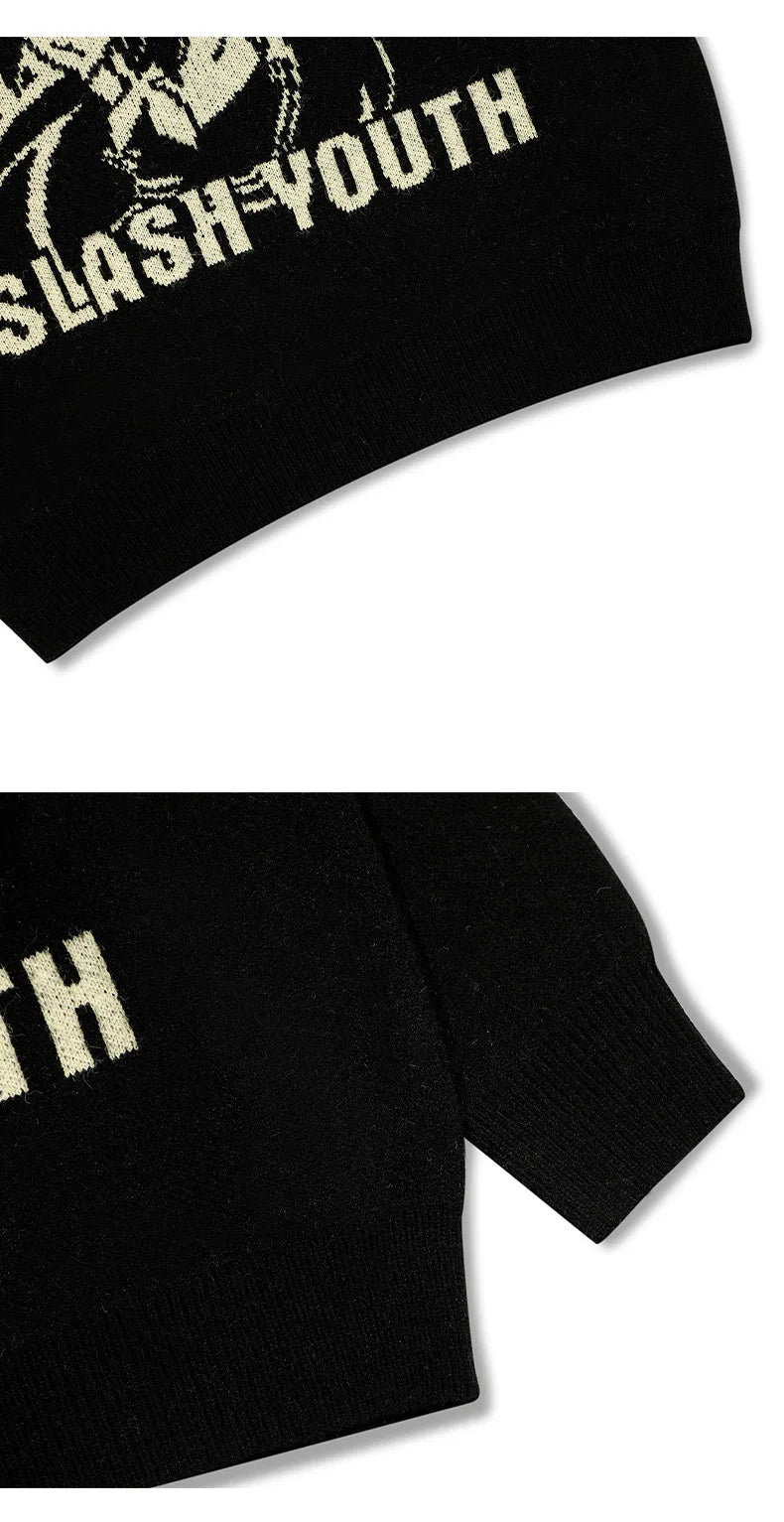 Sweater Women Japanese Cartoon Printed Pullover Knitwear Winter Chic Kawaii Sweaters O-neck Loose Cute Jumpers Tops Y2k Clothing