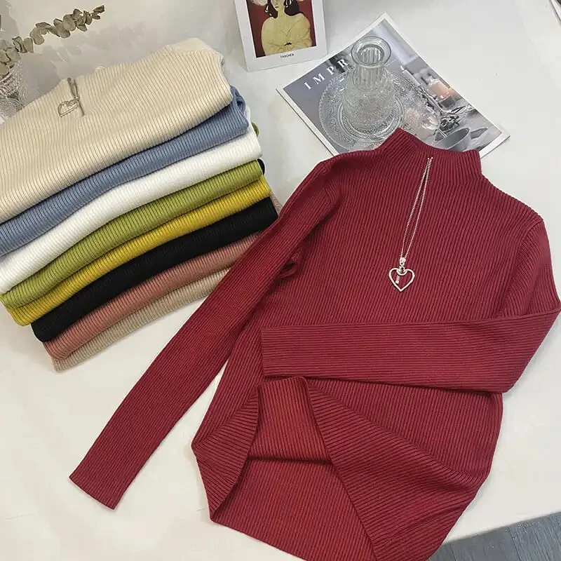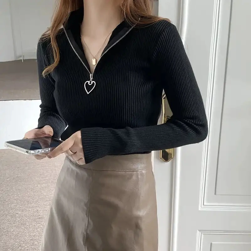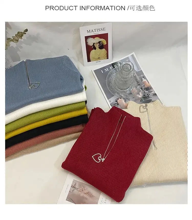 Sweater Women's Autumn and Winter New Semi-turtleneck Love Zipper Core-spun Yarn Bottomed Knitted Sweater Thermal Top