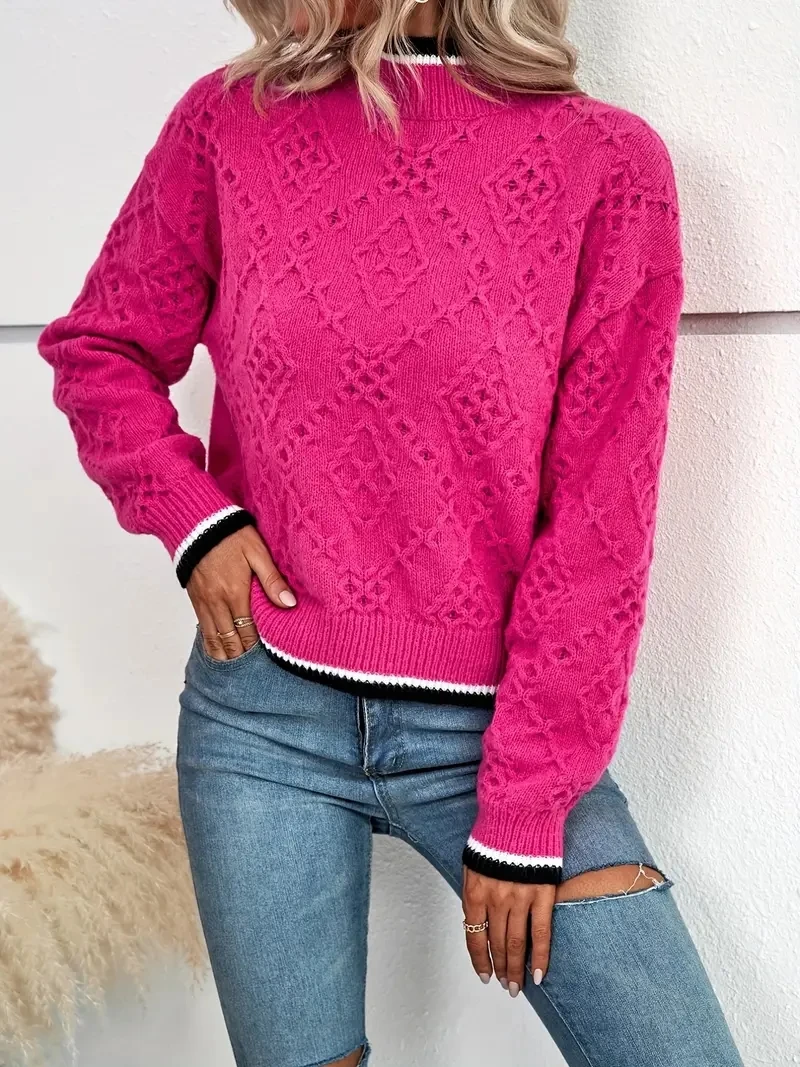 Sweaters for Women Striped Trim Drop Shoulder Sweater