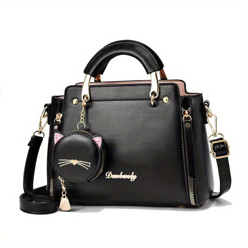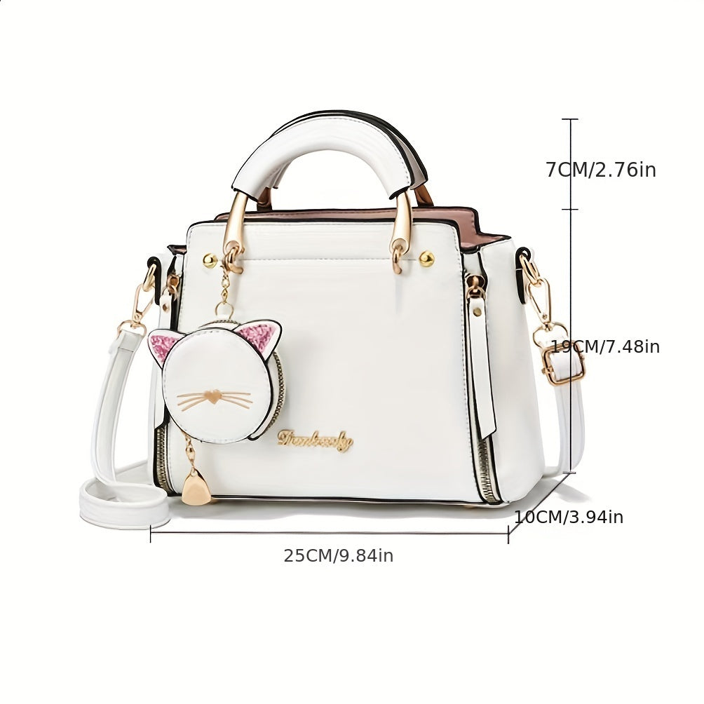 Sweet Cat Design Handbags, Fashion PU Crossbody Bag, Women's Top Handle Satchel Bag With Coin Purse