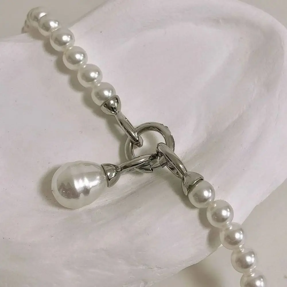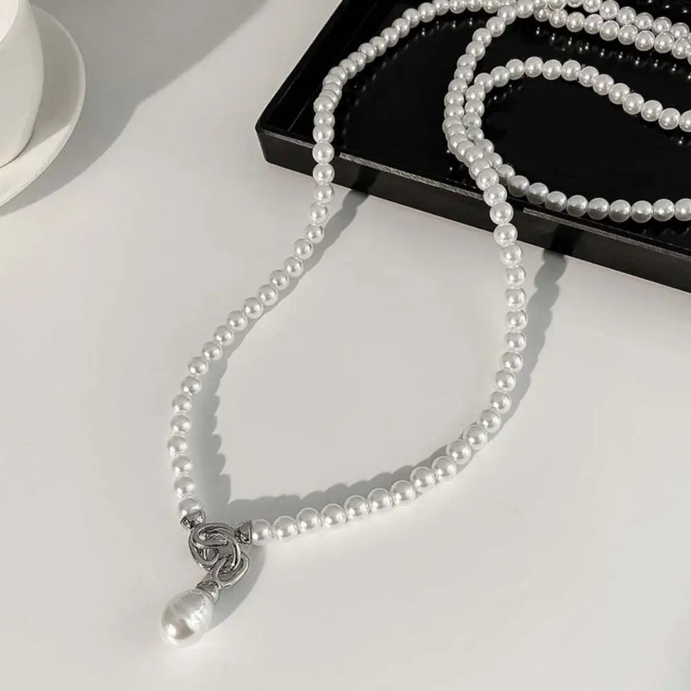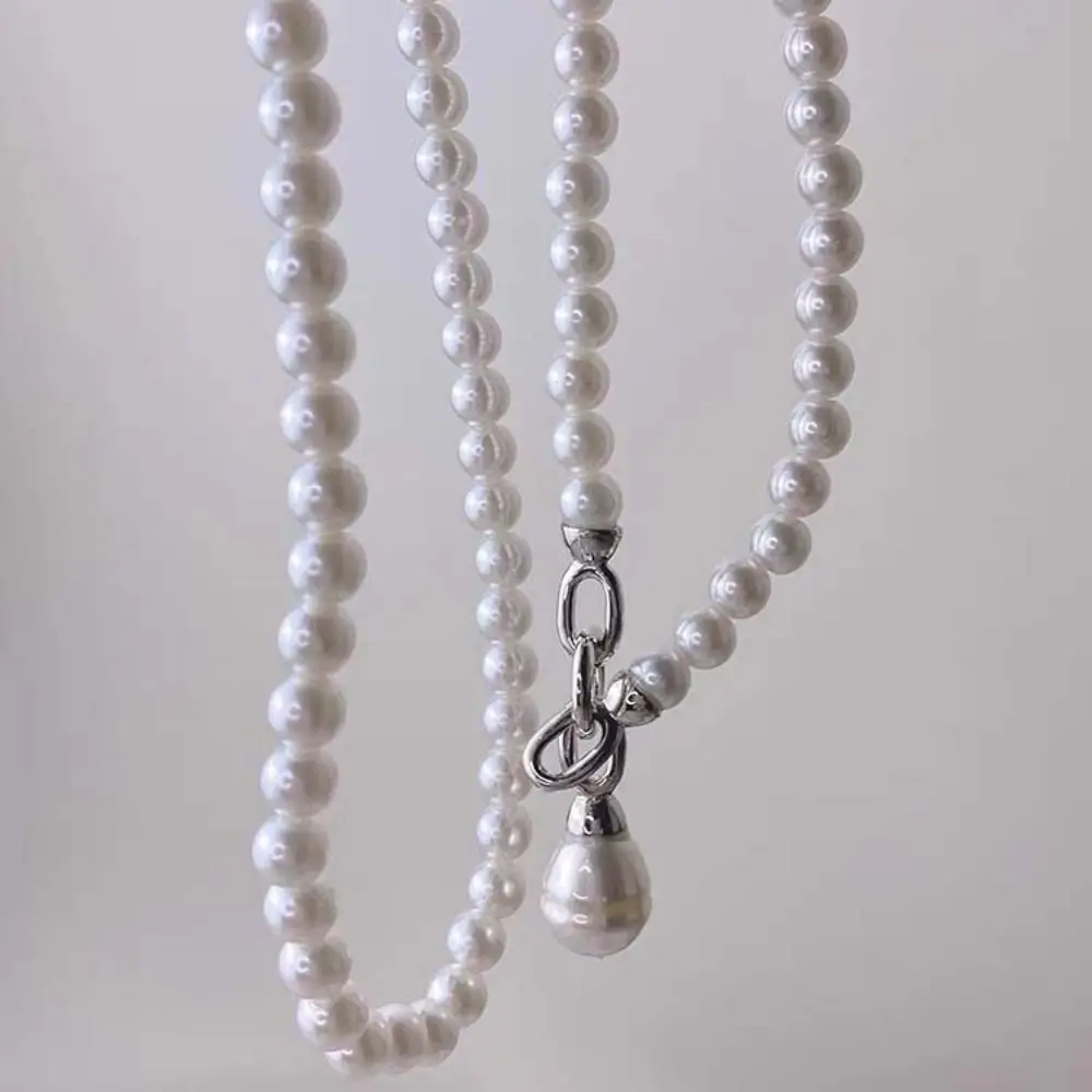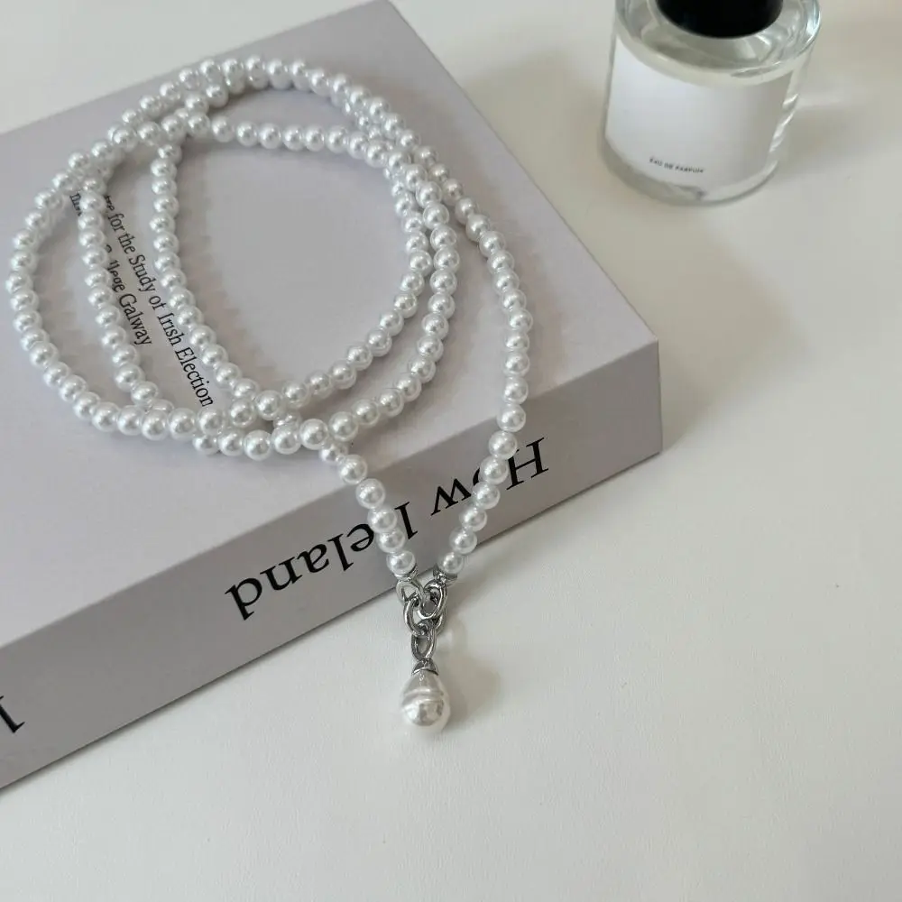 Sweet Elegant Pearl Beaded Necklace White Multilayer Pearl Choker Long Simple Pearl Pendant Accessory Women