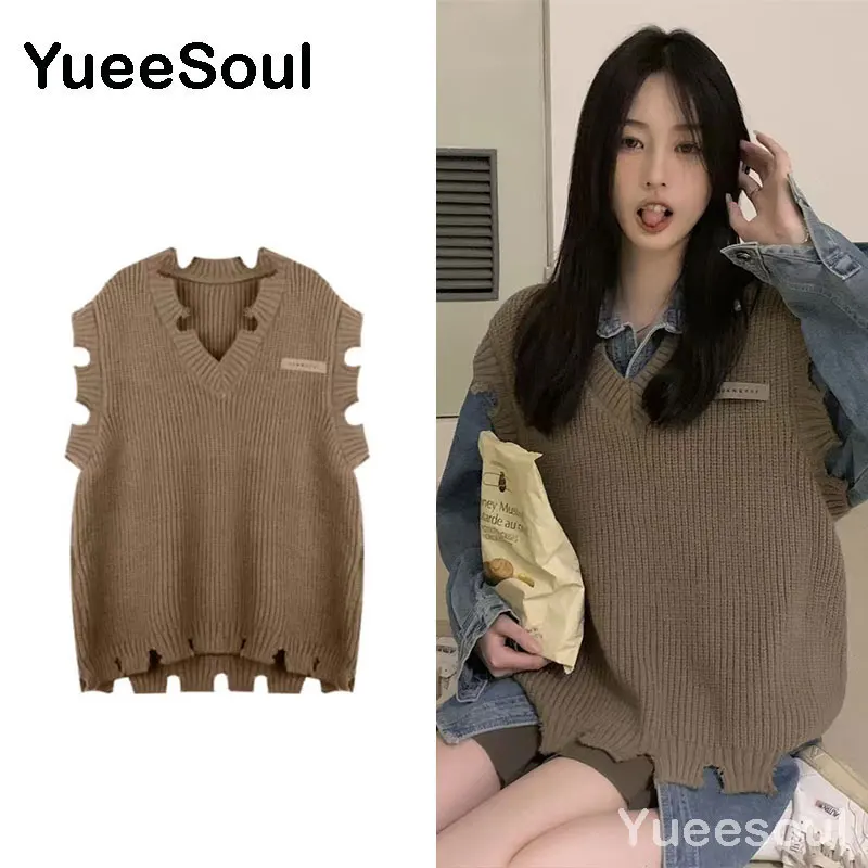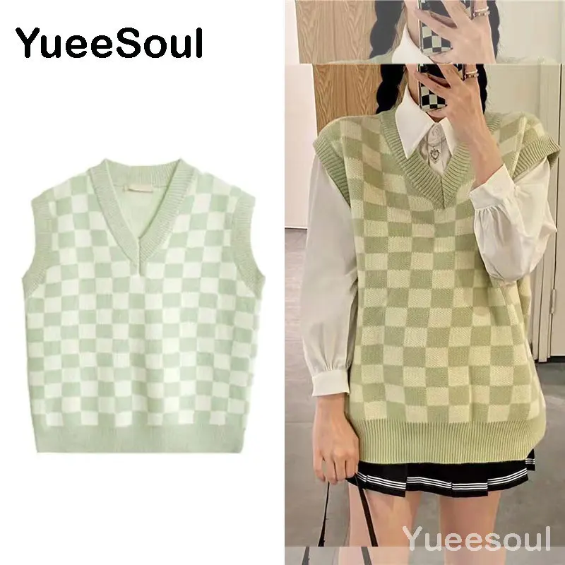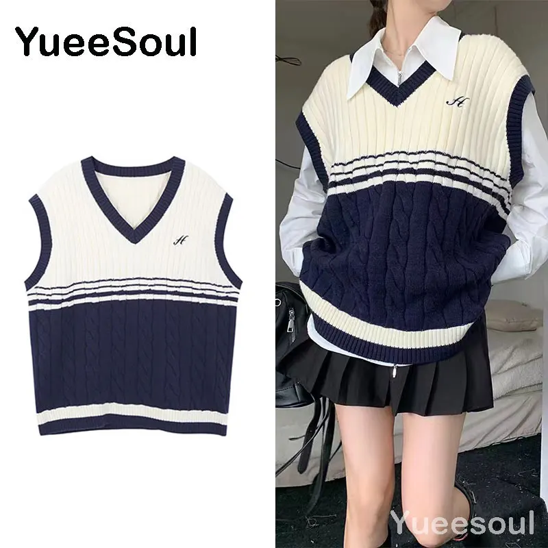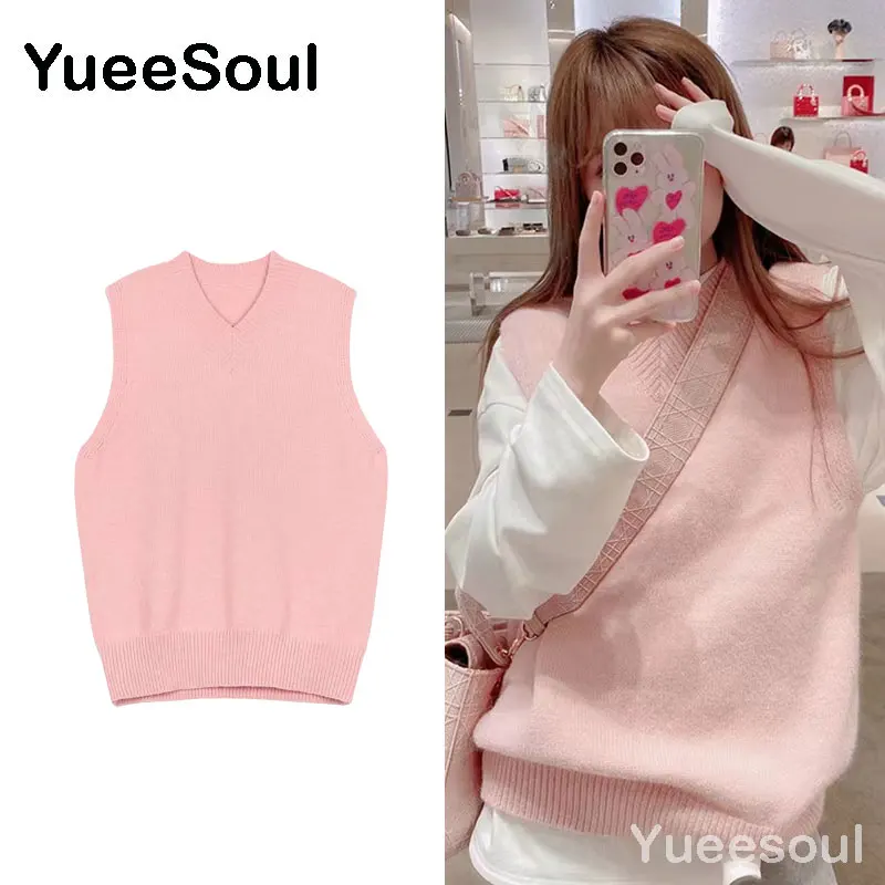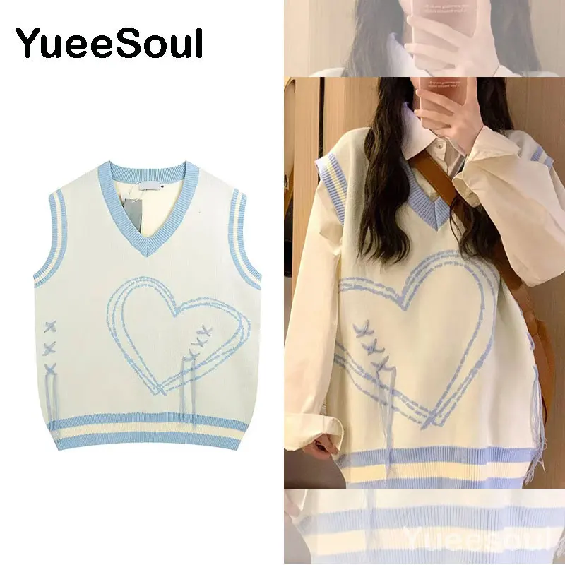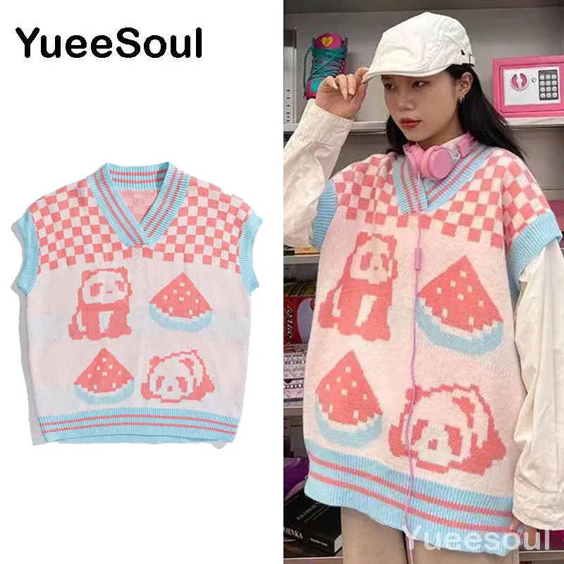 Sweet Kawaii Sweater Vest Printed Sleeveless Casual Outerwear Knitted Waistcoat 2023 Vintage Y2K Spring E Girl Pullovers Tops