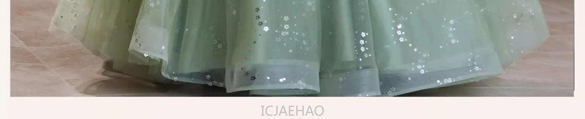 Teen Girl Clothes Green Girls Princess Dress Kids Pageant Host Gown Birthday Party Outfit Piano Recital Performance Formal Wear