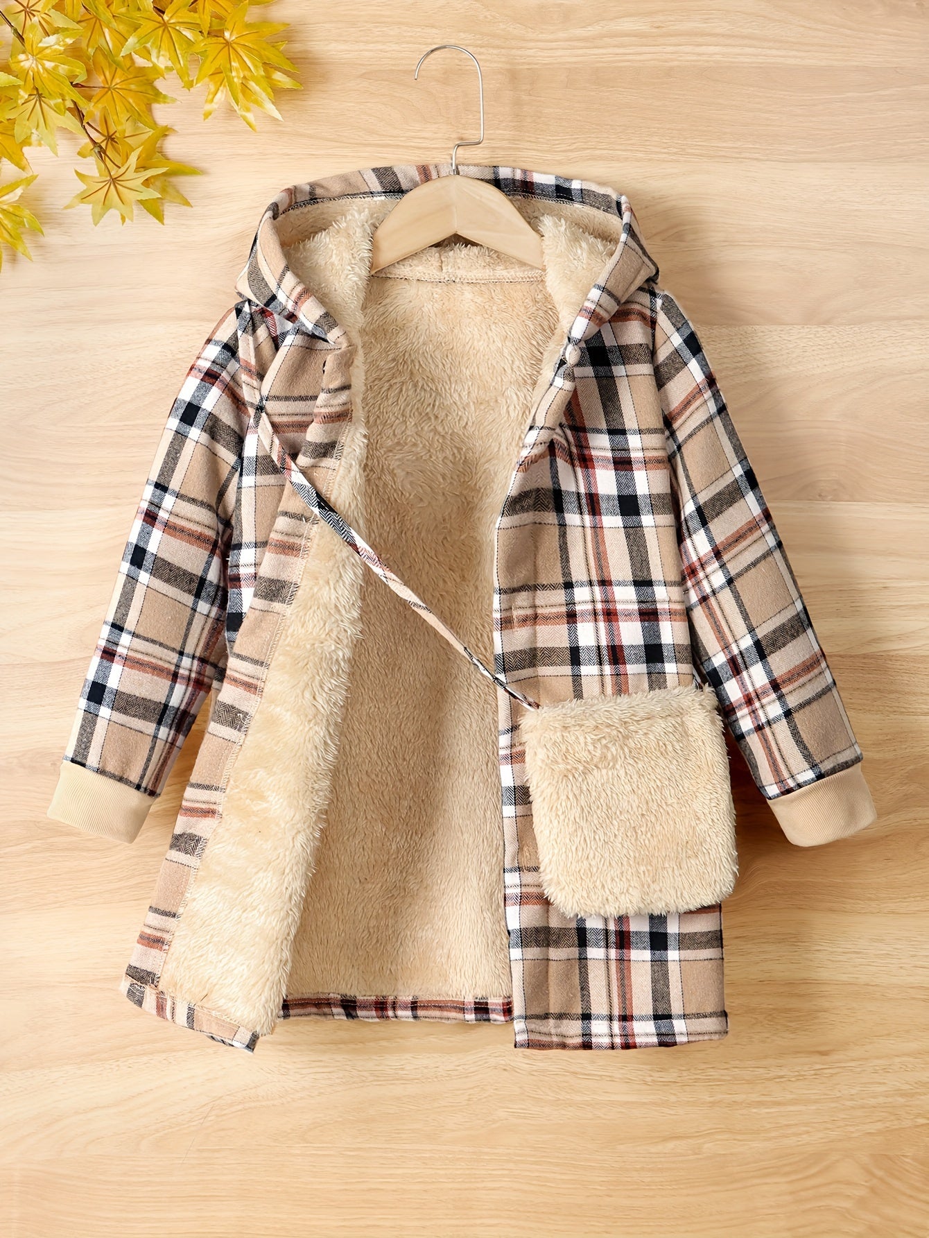 Thick Plush Liner Girls Winter Jacket & Bag, Warm Button Up Long Cardigan Hooded Coats For Autumn And Winter