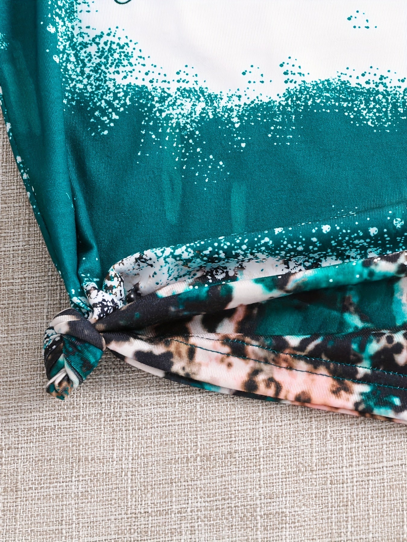 Toddler Babies Unisex Graphic T Shirts With Leopard & Letter Print Crew Neck Casual Summer Tops, Kids Clothing